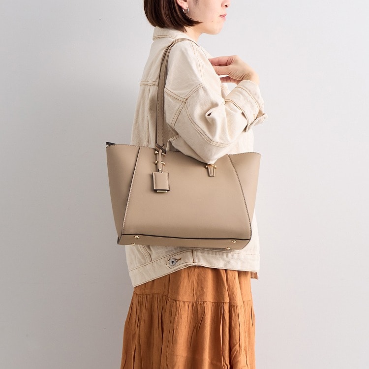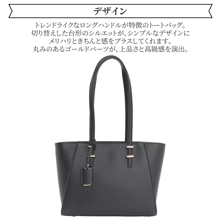 トレンド感のあるロングハンドルがポイントのトートバッグ。