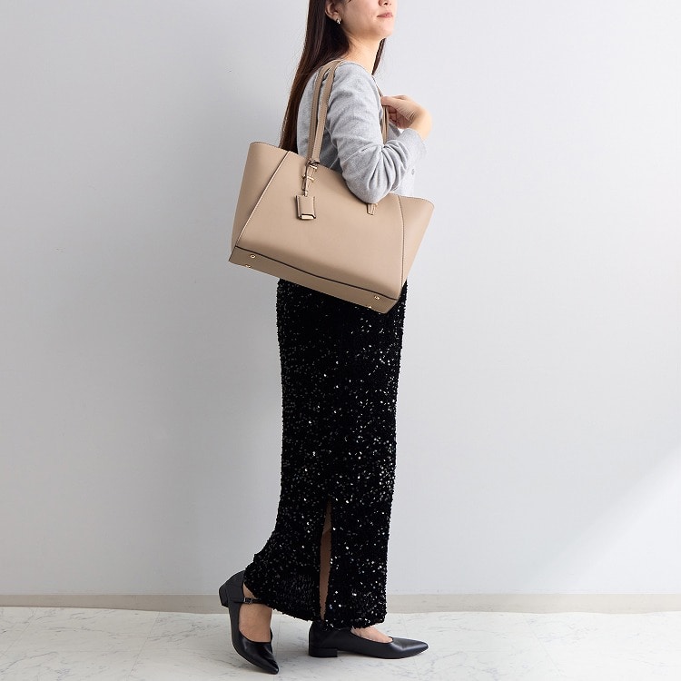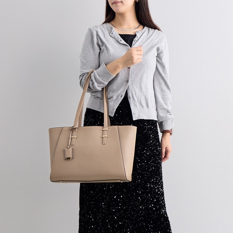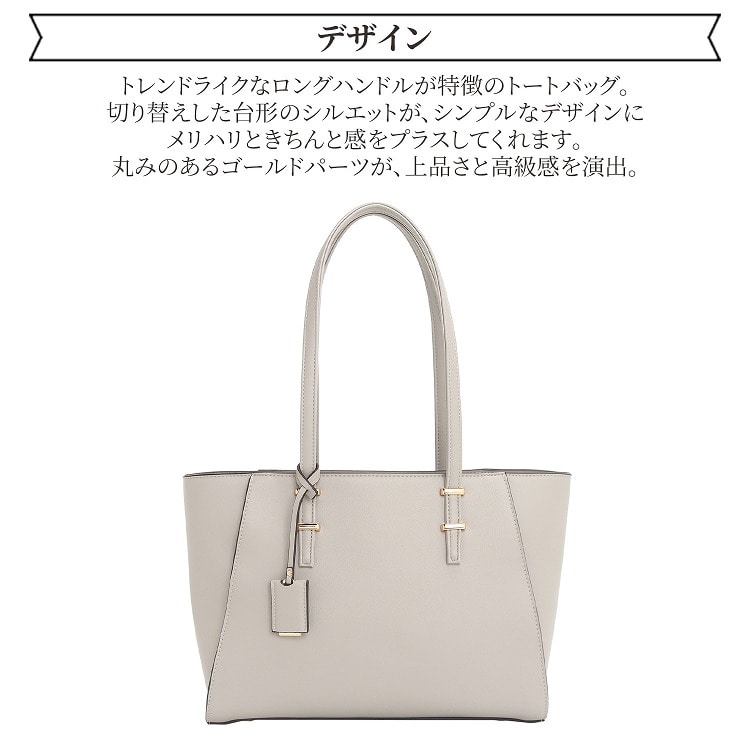 トレンド感のあるロングハンドルがポイントのトートバッグ。