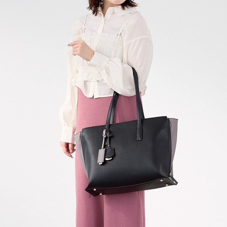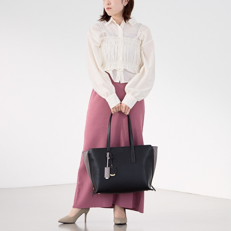 しっかりと自立するマチが広めのキレイめトートバッグ。