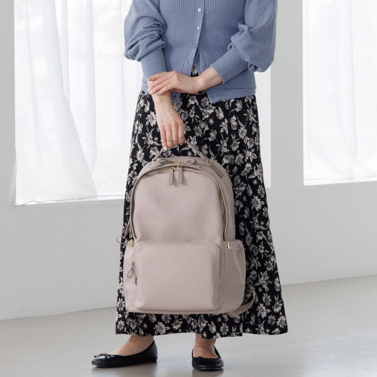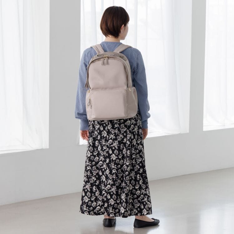 上品なパイピングとリボンディティールが特徴のきれいめリュック。