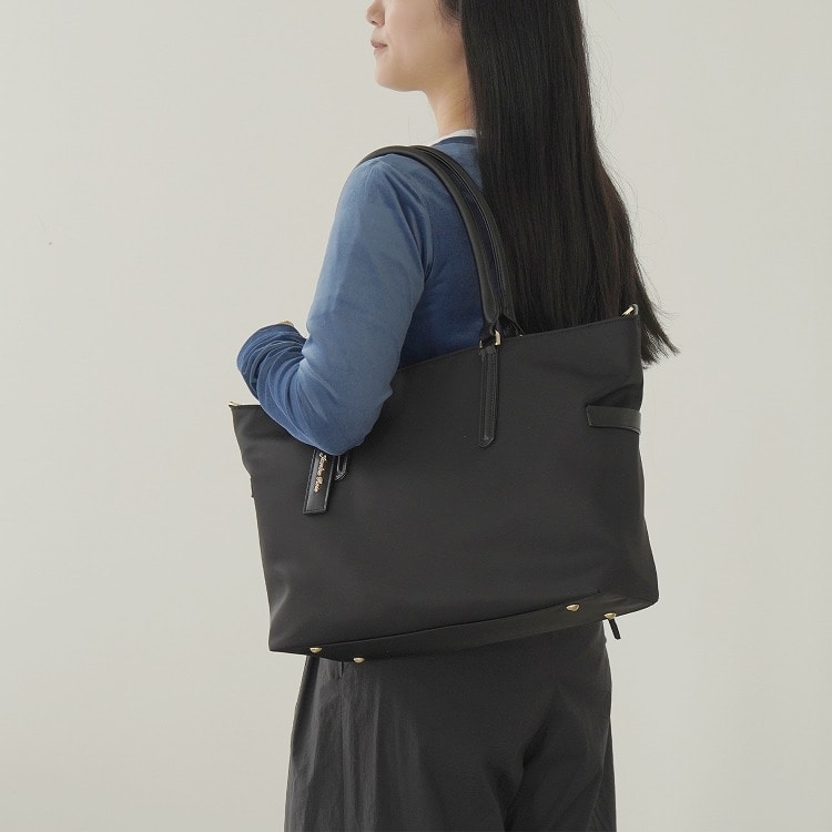 美しいツヤのあるナイロン素材を使用した台形トートバッグ。