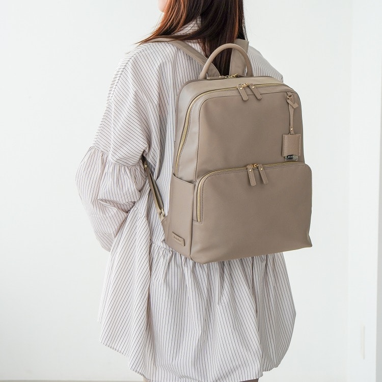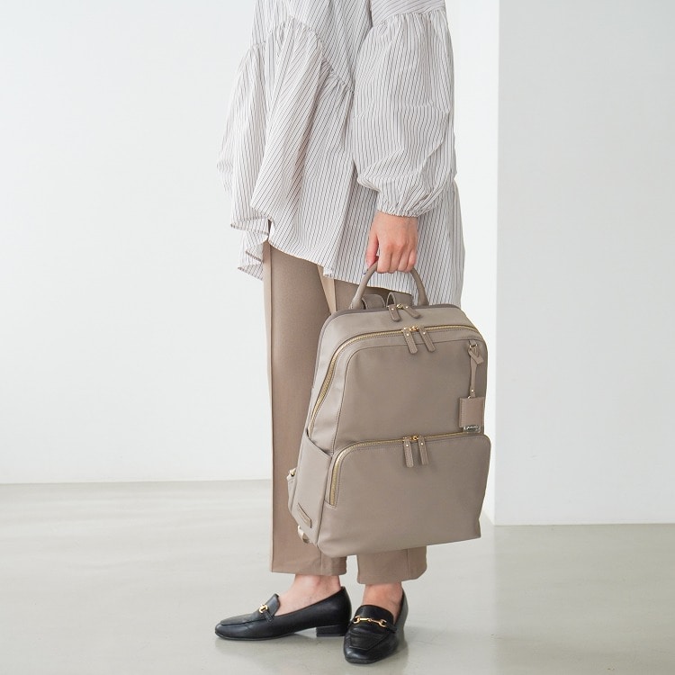 上品でミニマルな、すっきりとしたデザインが特徴のリュック。