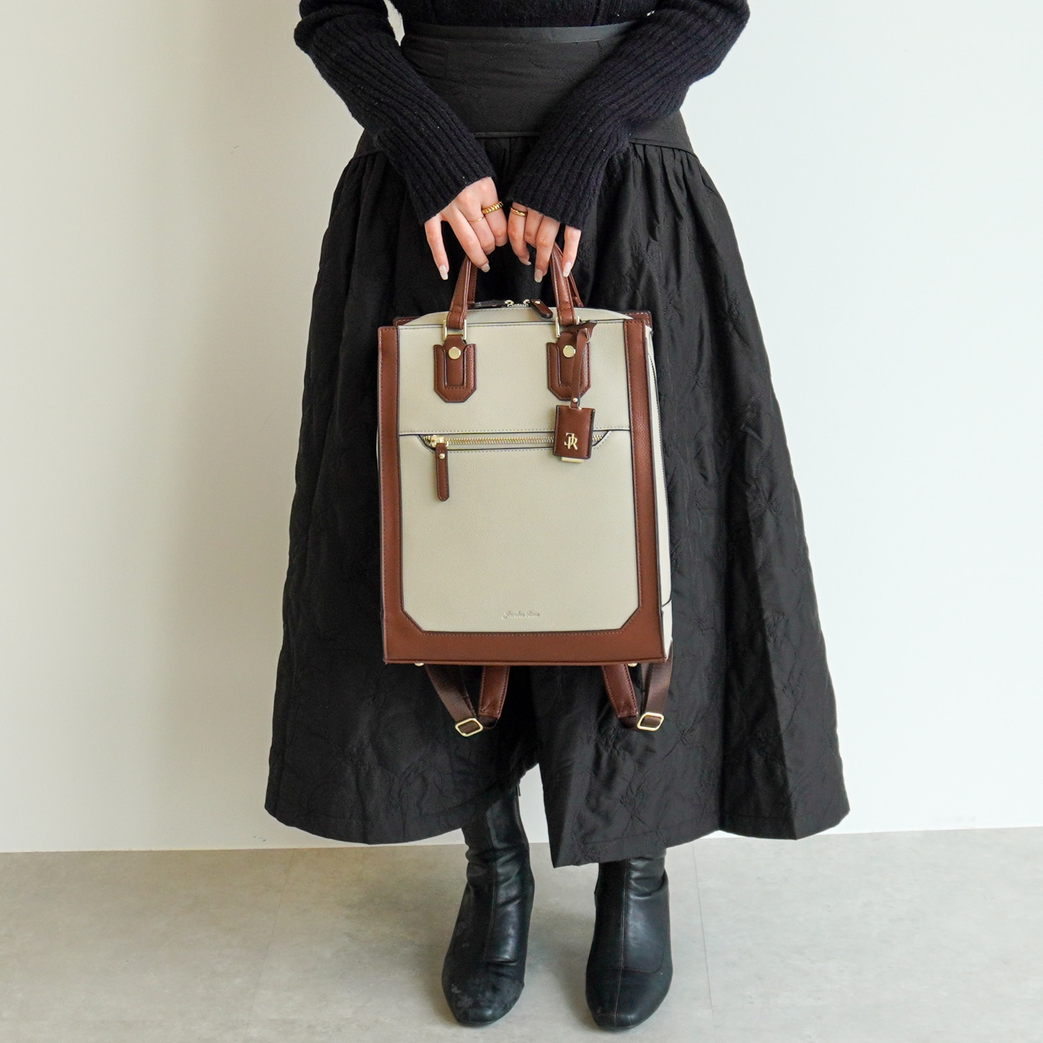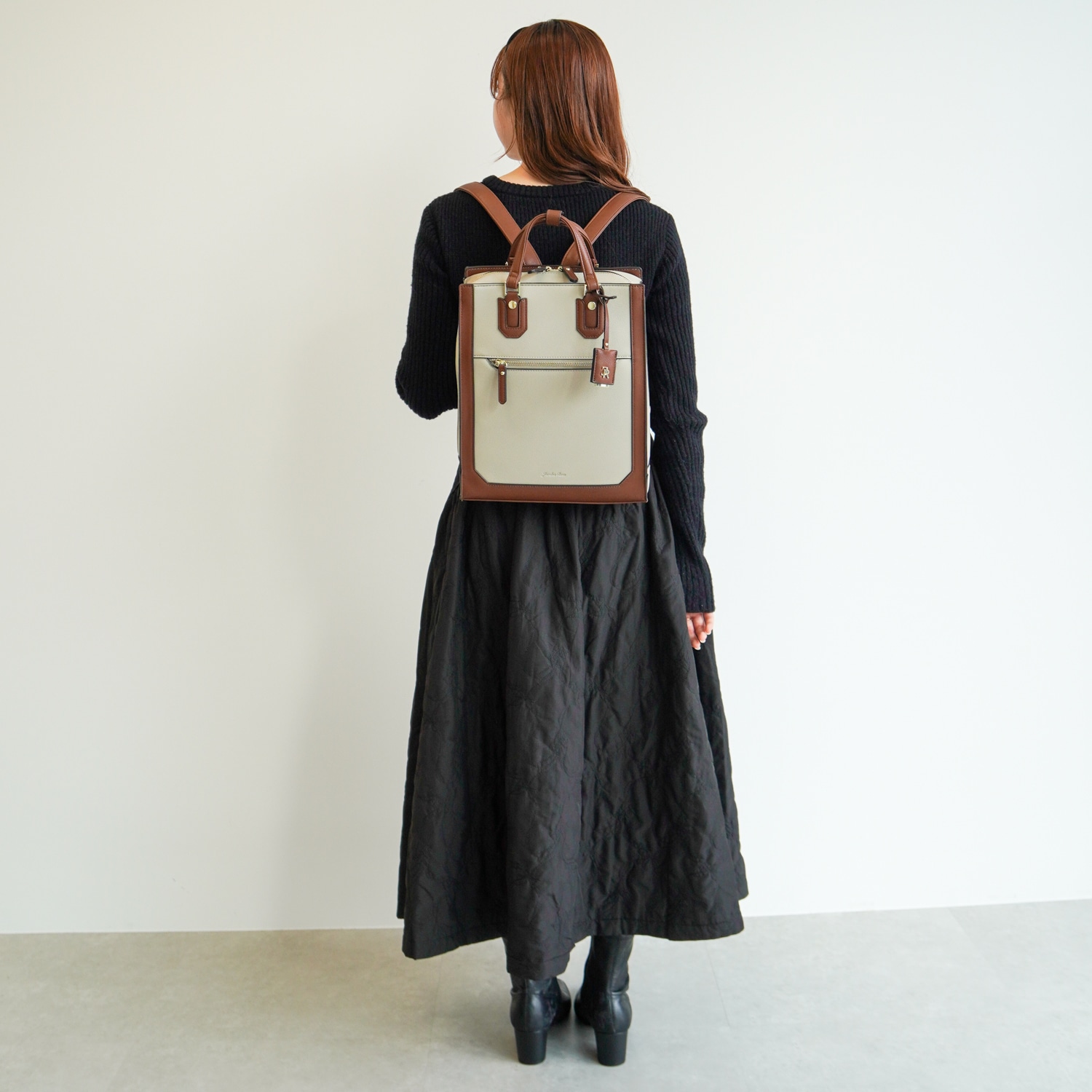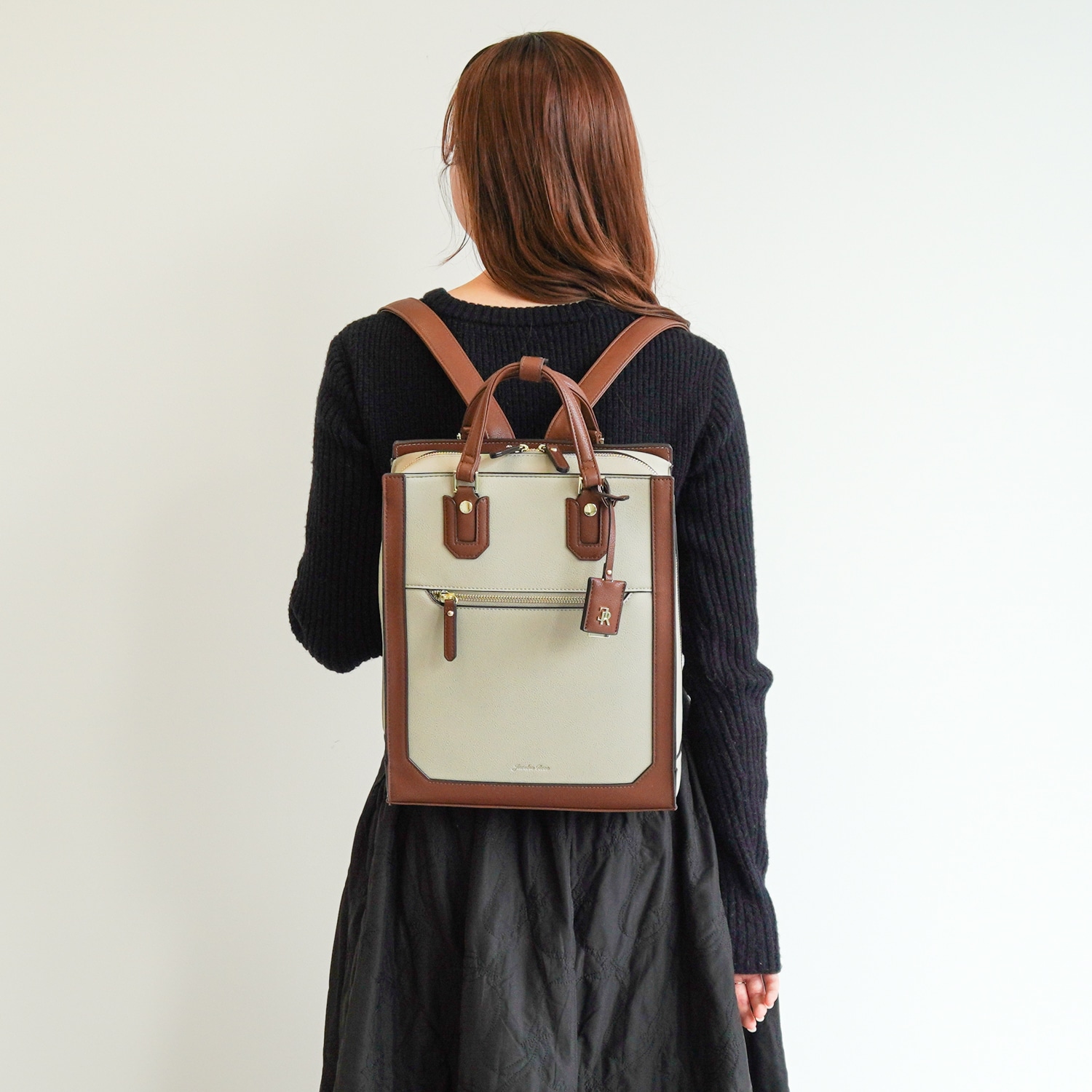 ハンドバッグのように持てるクラシカルなスクエアリュック。