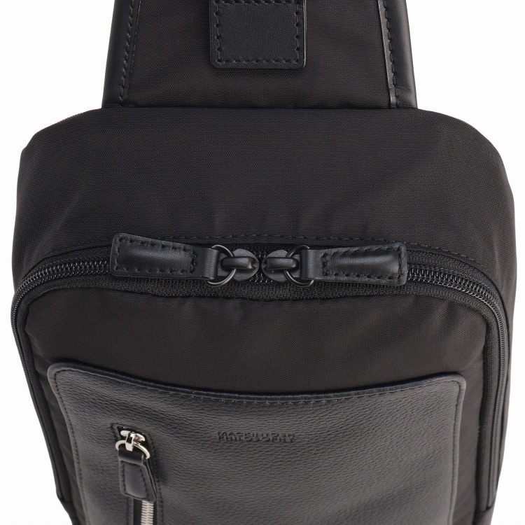 本体に光沢感のあるナイロン330クラシックツイル、フロント部分にソフトレザーを使用することでよりきちっとした印象に。