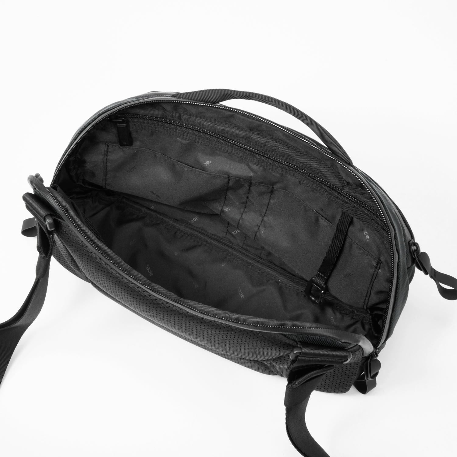 タウンユースやカジュアルな通勤スタイルにも使いやすい、10.1インチタブレット対応のヨコ型ボディバッグ。