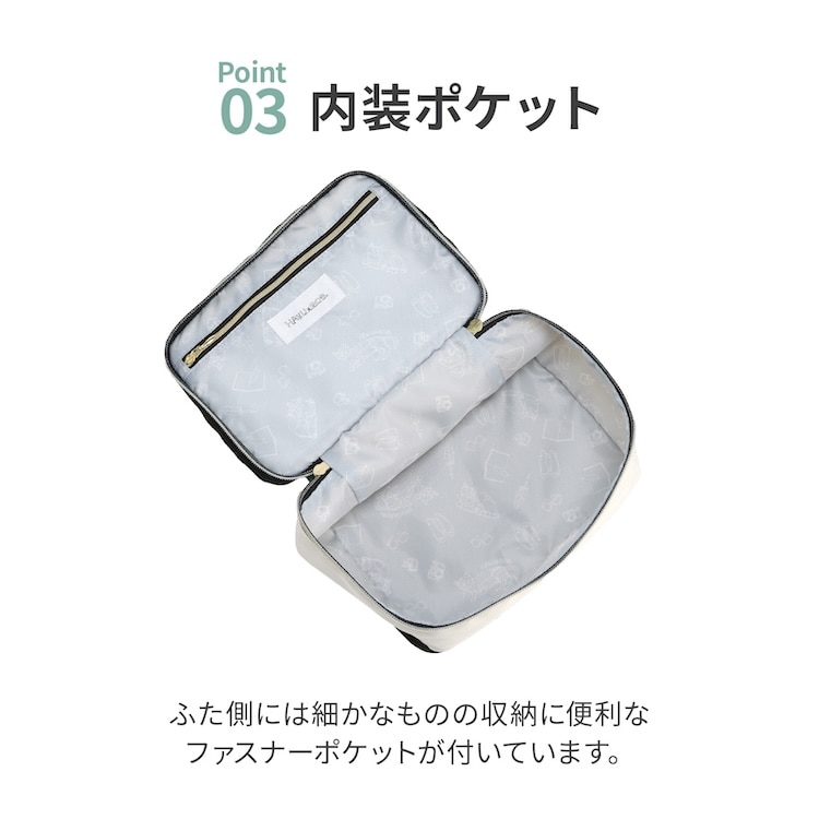 ・ふた側には細かなものの収納に便利なファスナーポケット付き。
