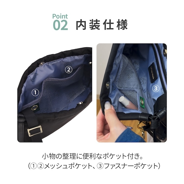 | 機能一覧 | ドローストリング/オーガナイザーポケット |