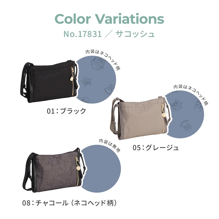 ・シンプルな無地タイプは内装ネコ柄、ネコヘッド柄タイプは内装無地仕様。