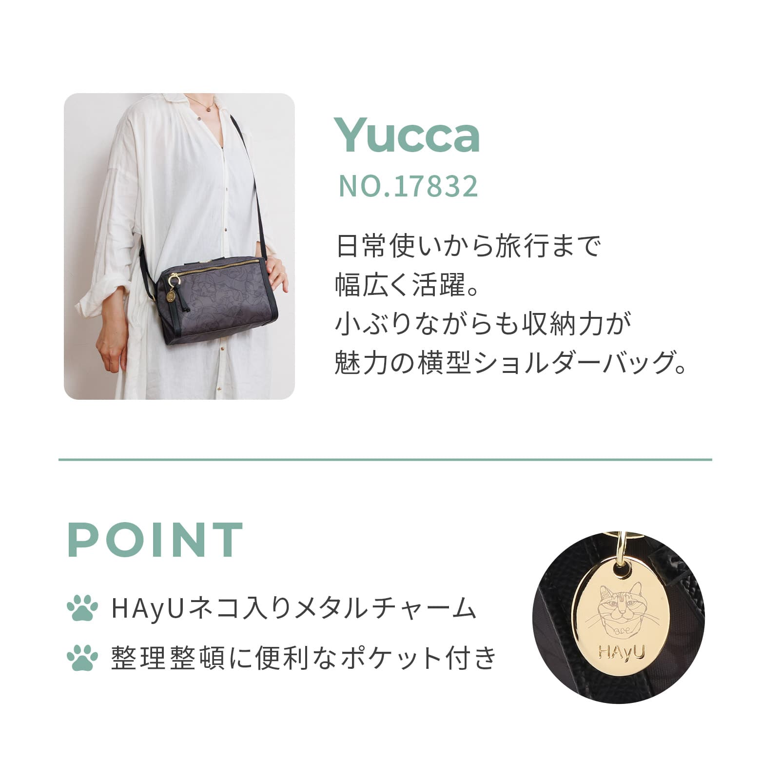 ・引手部分にHAyUネコ入りメタルチャーム付き。