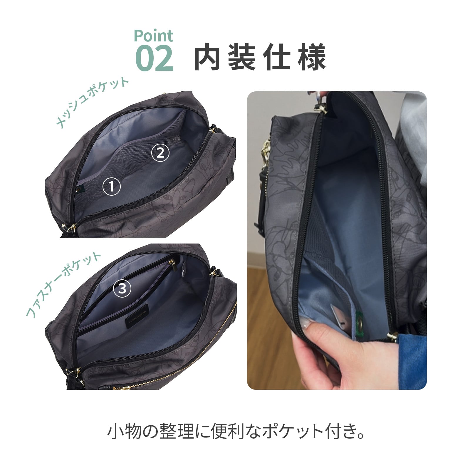 | 機能一覧 | ハトメトリング/オーガナイザーポケット |