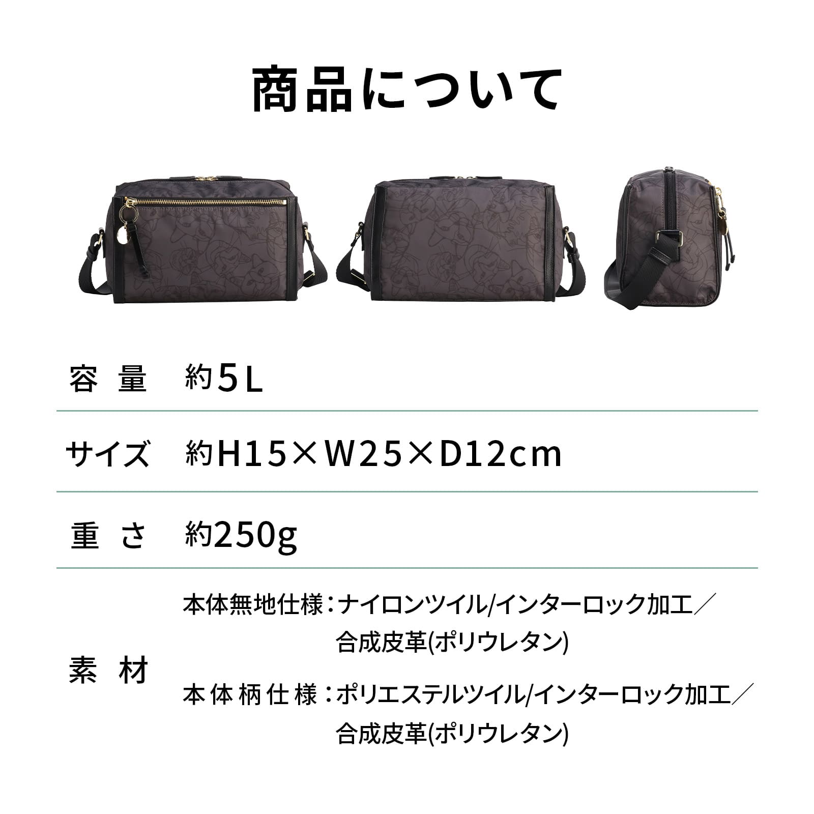 | 素材 | ナイロンツイル/インターロック加工/合成皮革(ポリウレタン) |