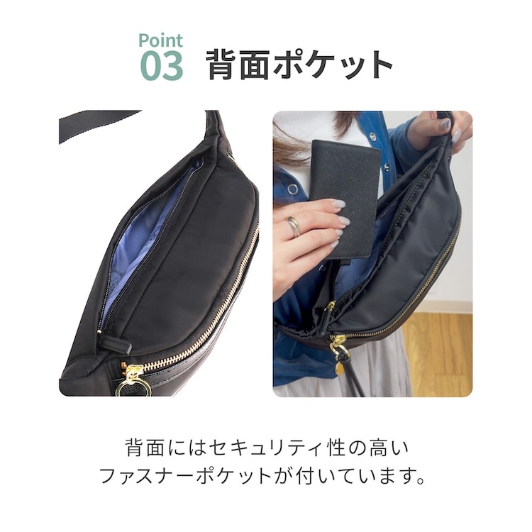 ・背面にはセキュリティ性の高いファスナーポケットを配置。