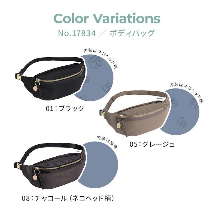 ・シンプルな無地タイプは内装ネコ柄、ネコヘッド柄タイプは内装無地仕様。