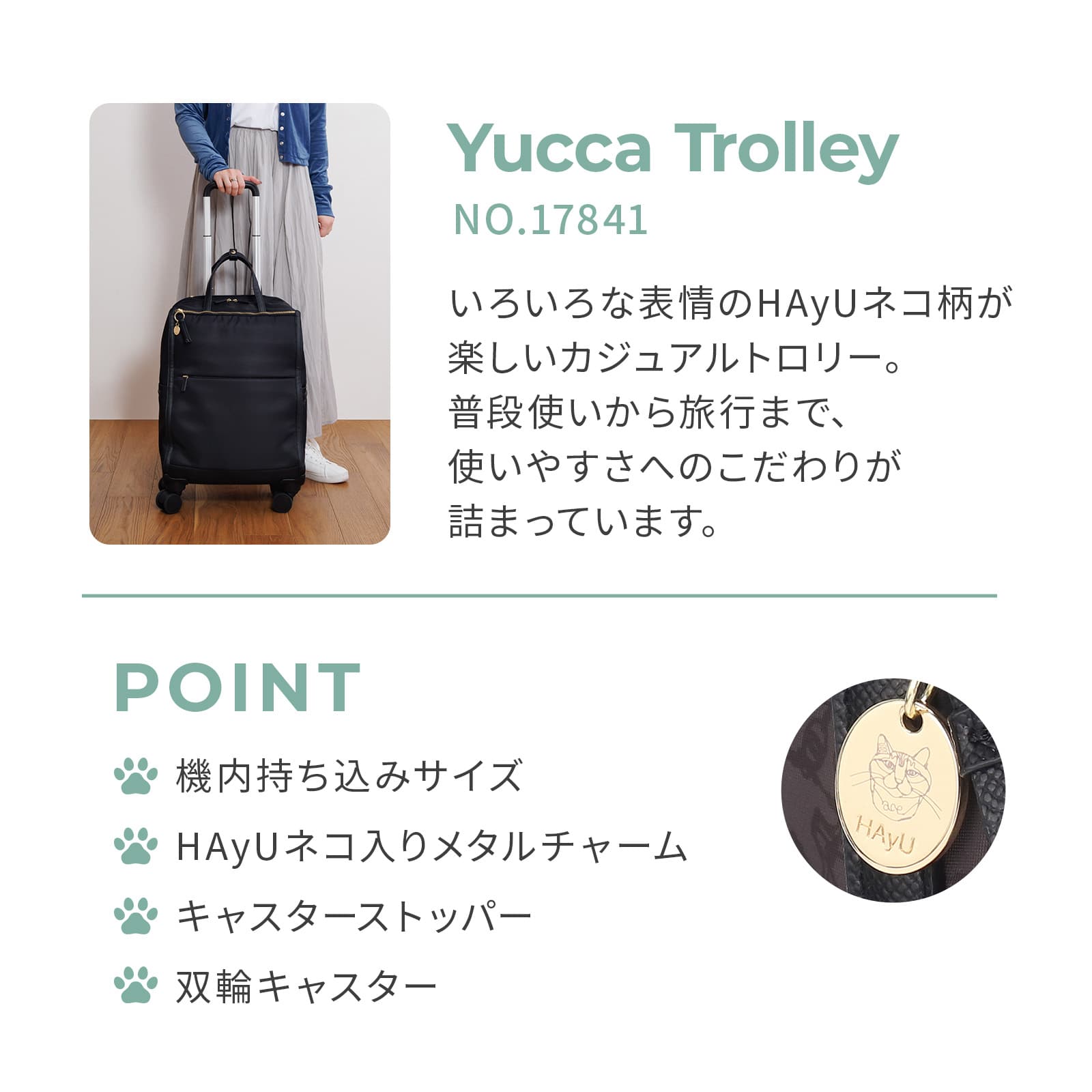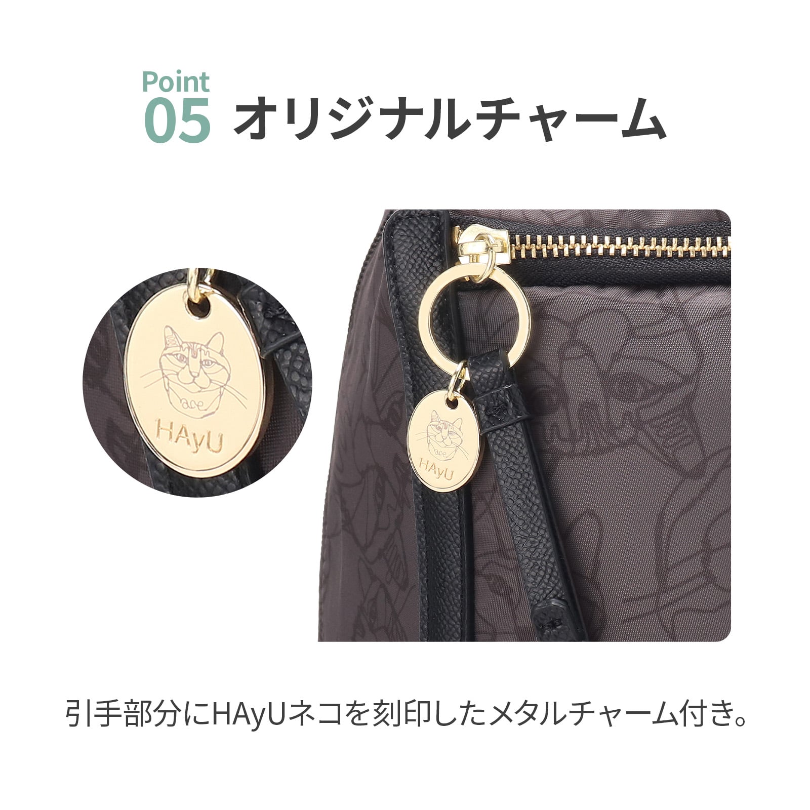 ・引手部分にHAyUネコ入りメタルチャーム付き。