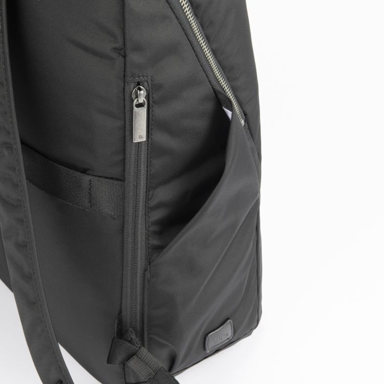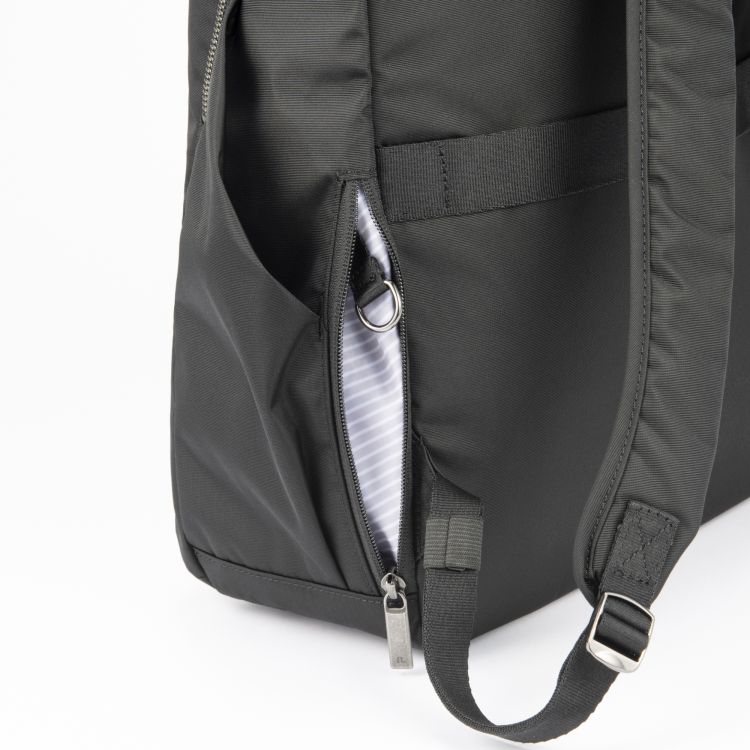 側面ファスナーと本体気室の双方から物の出し入れが可能なポケット。