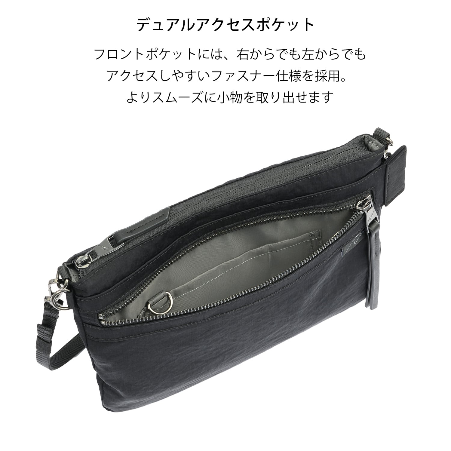 フラットショルダータイプは、パスポートや航空券、財布、スマホ、コード類など、細かな貴重品をすっきり整理できるオーガナイザーポーチ兼ショルダーです。
