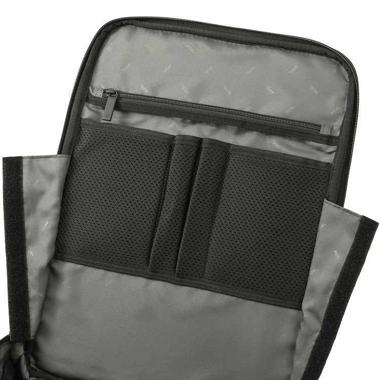 側面ファスナーと本体気室の双方から物の出し入れが可能なポケット。