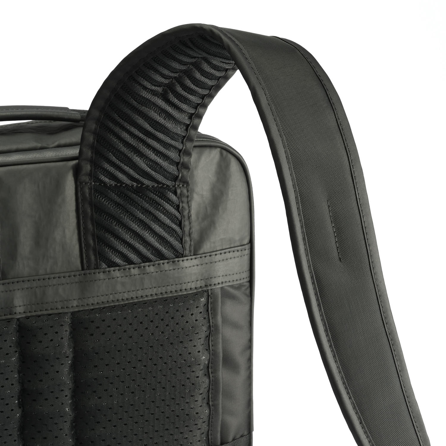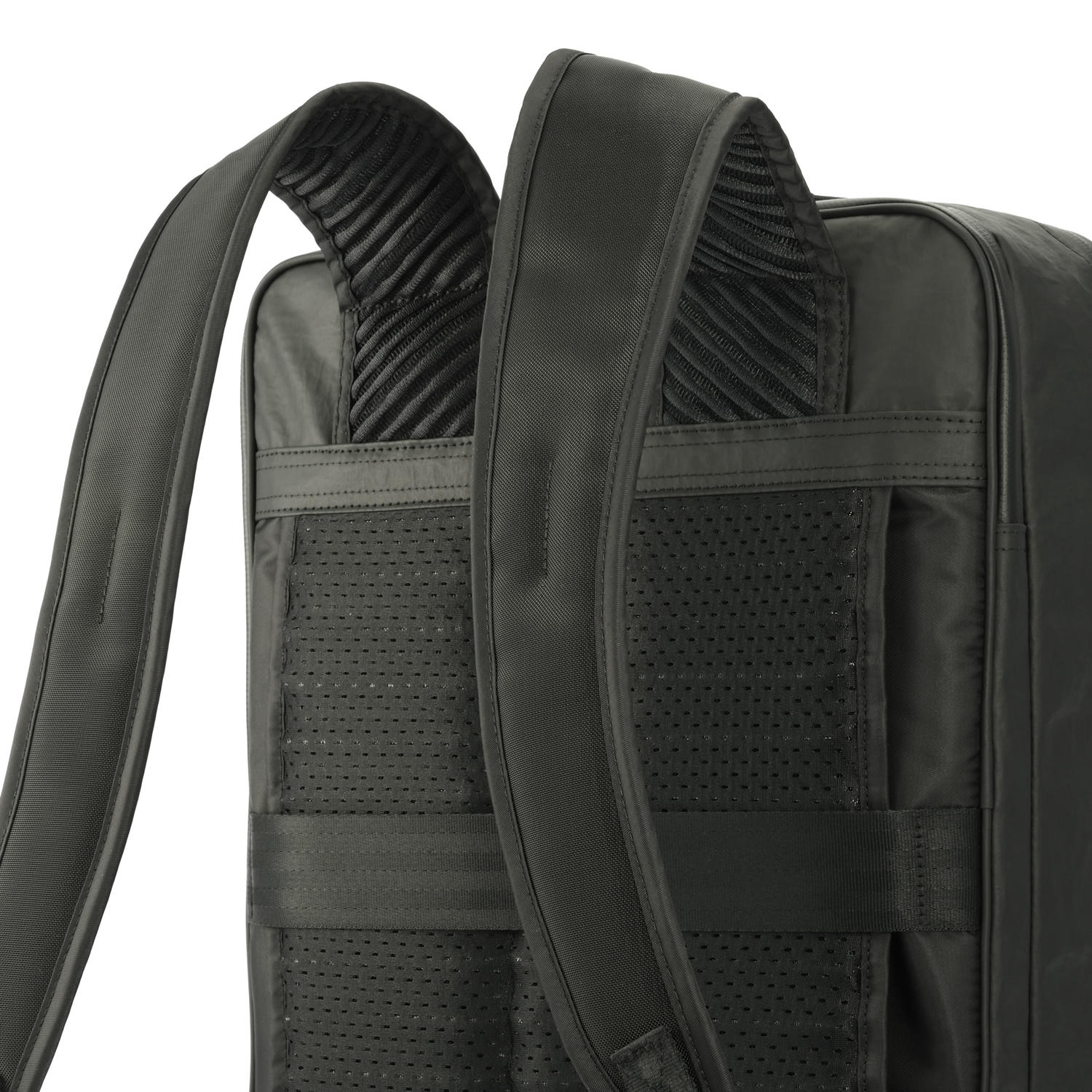 自社計測データをベースに、より多くのユーザーの身体にフィットして負荷を軽減するメッシュ仕様のショルダーハーネスを開発。