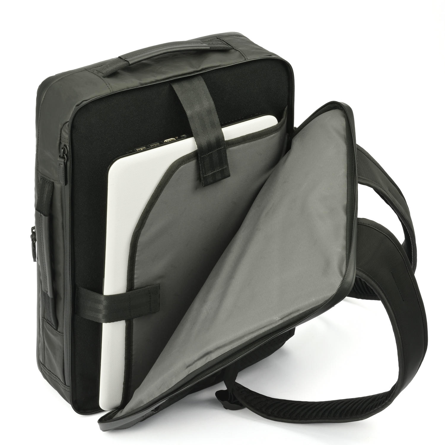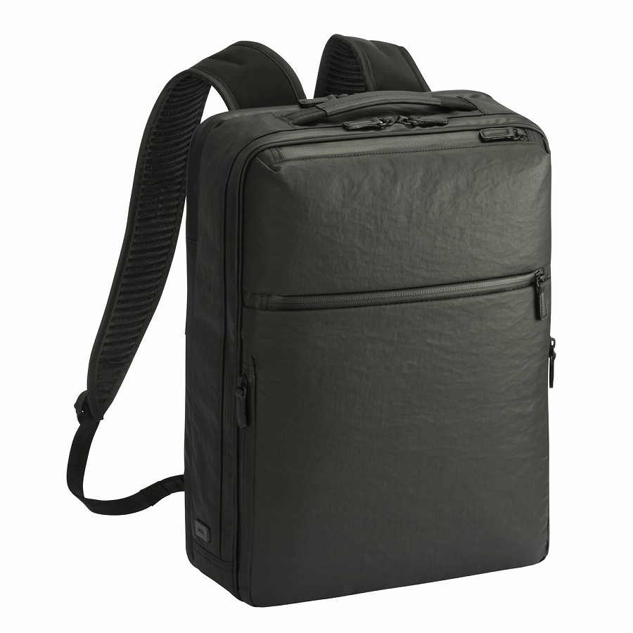出張、通勤やタウンユースなどオンオフ兼用できる15.6インチPC収納可能・B4ファイル対応の薄マチリュックです。