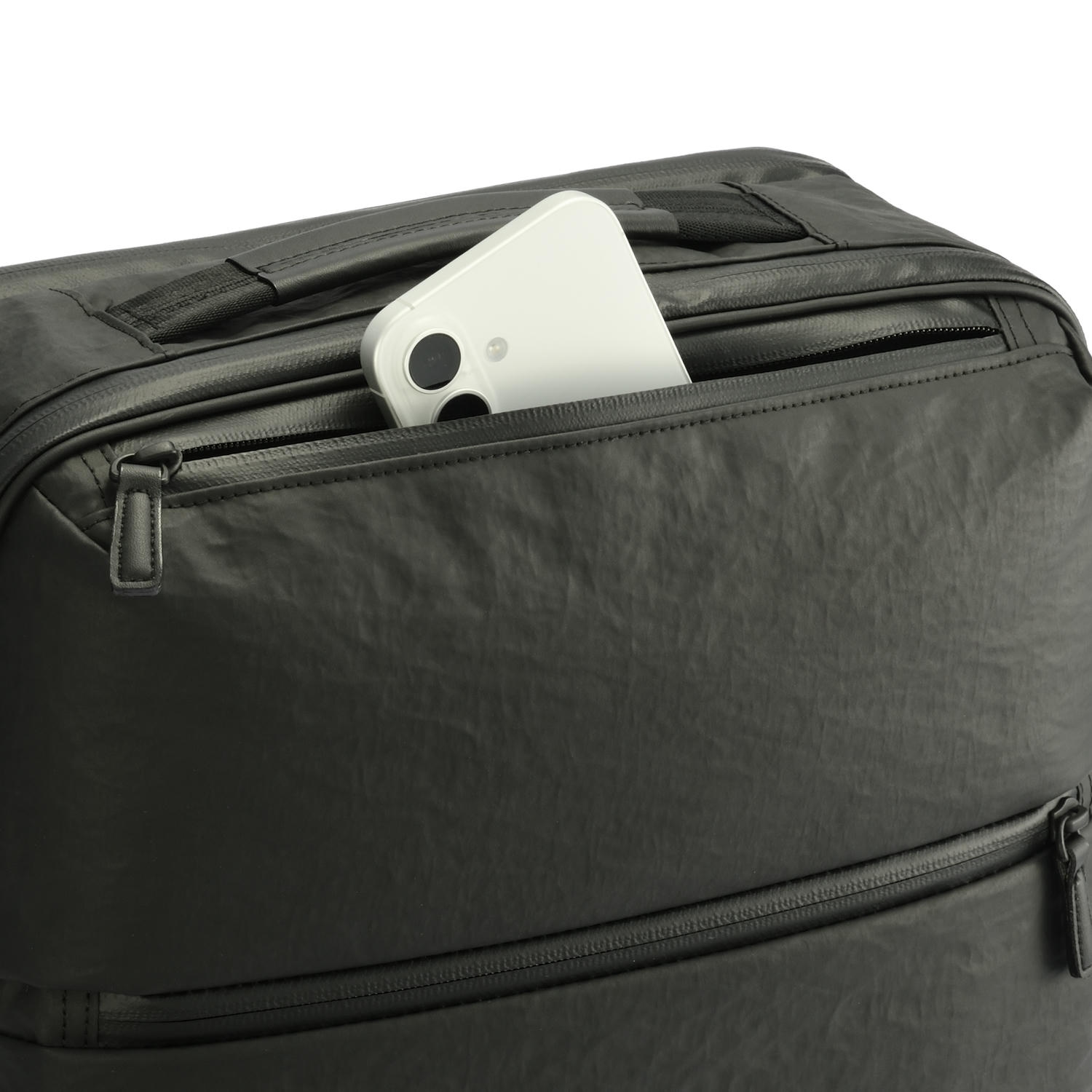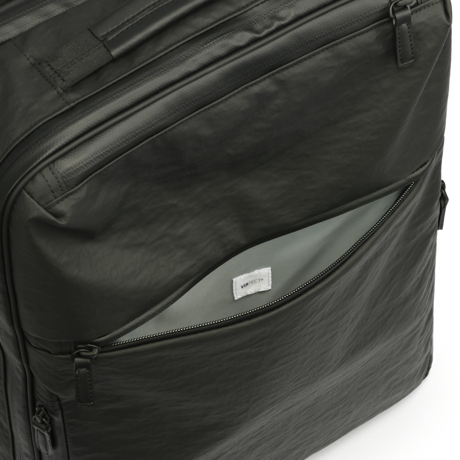 側面ファスナーと本体気室の双方から物の出し入れが可能なポケット。