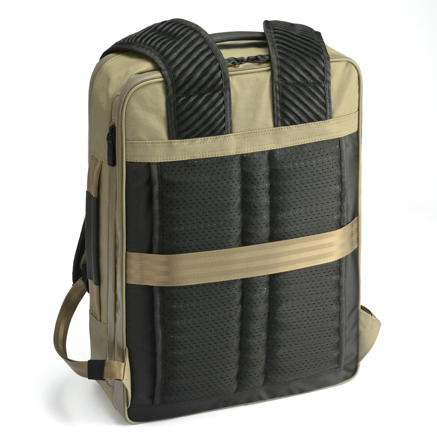 自社計測データをベースに、より多くのユーザーの身体にフィットして負荷を軽減するメッシュ仕様のショルダーハーネスを開発。