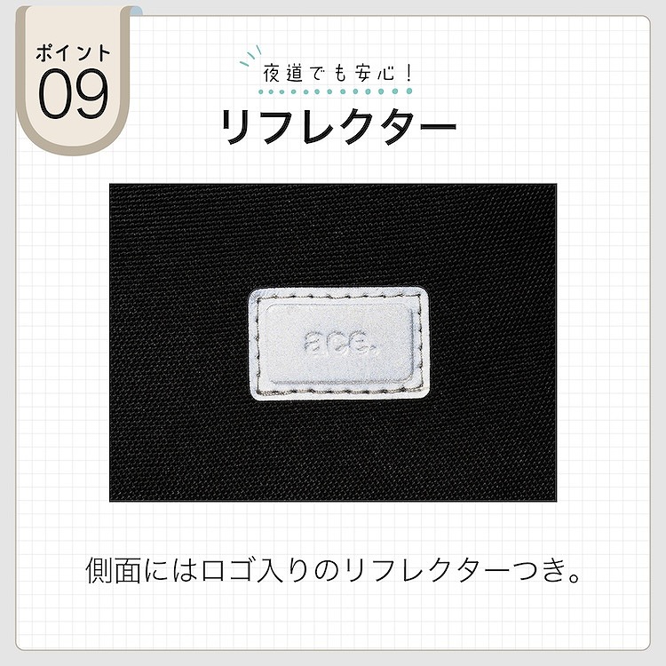 車のライトに反射して居場所をドライバーに知らせる再帰反射素材を採用。