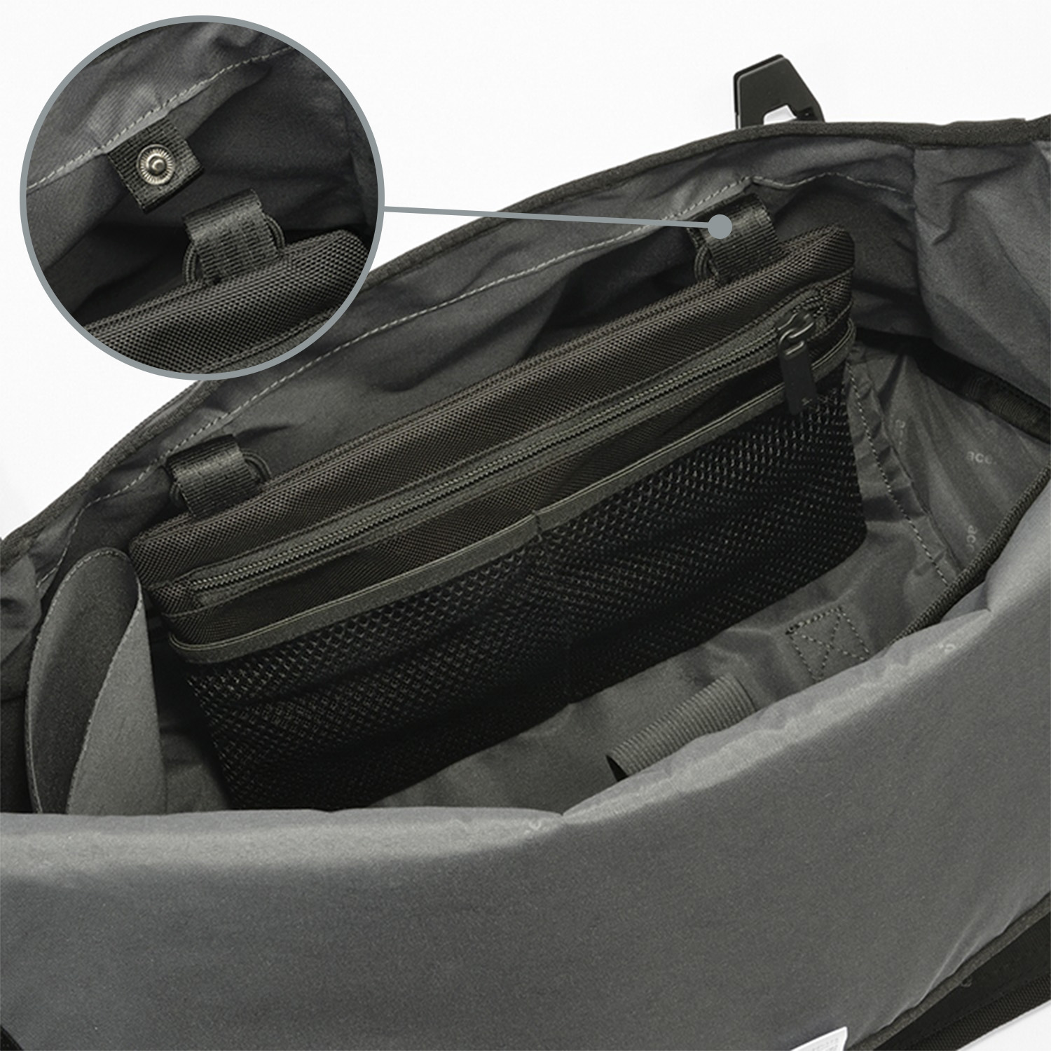 本体気室に側面ファスナーからもアクセスできるポケット。