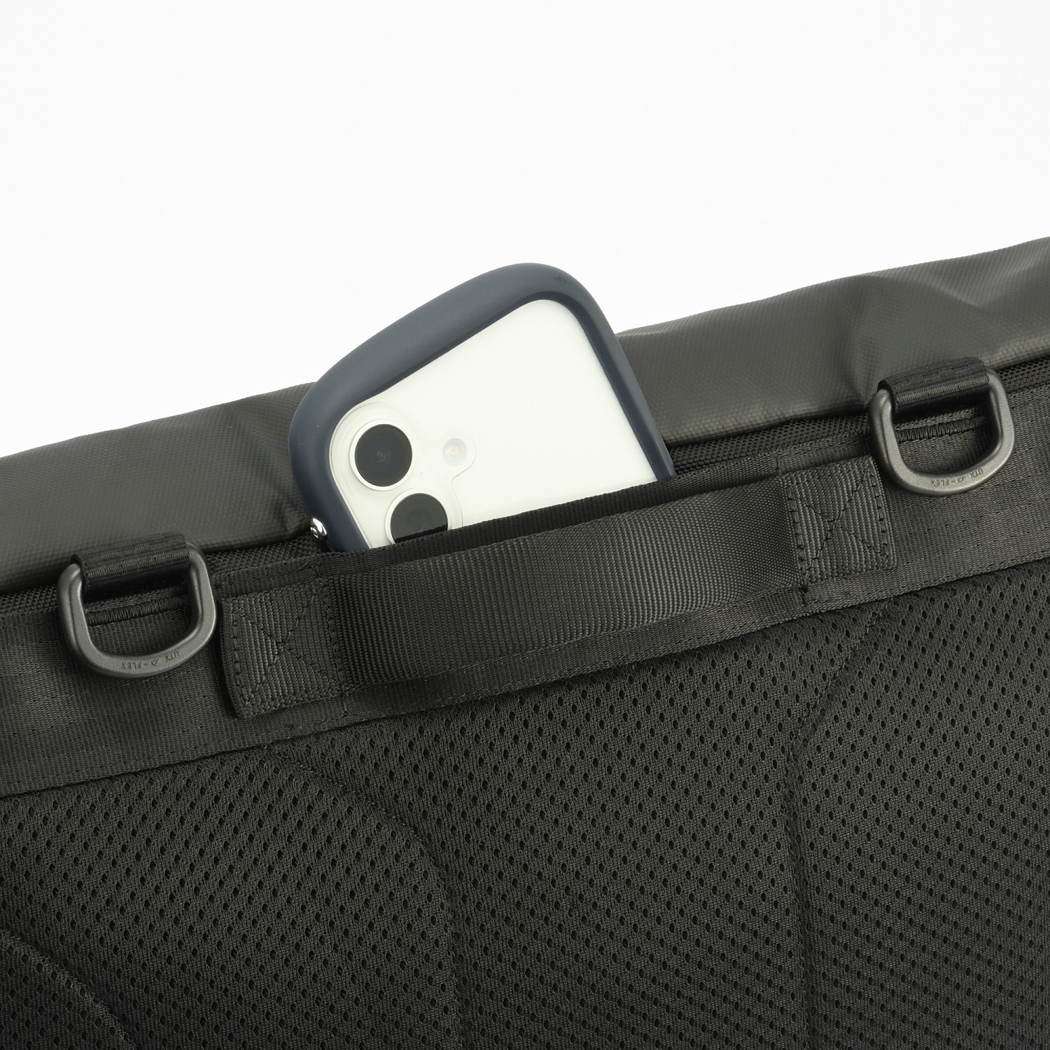 素早く出し入れできて滑り落ちにくい構造のスマートフォン専用ポケット。
