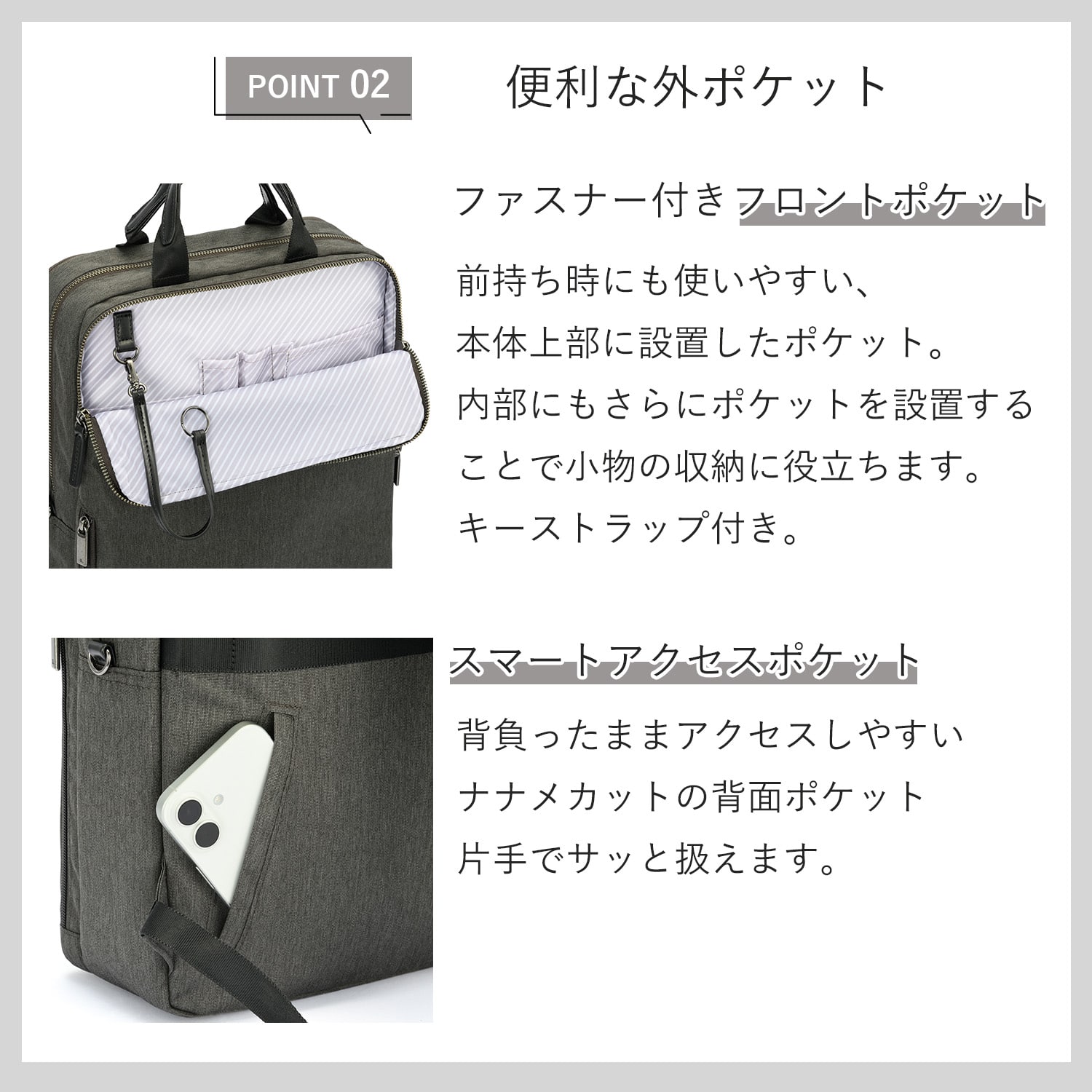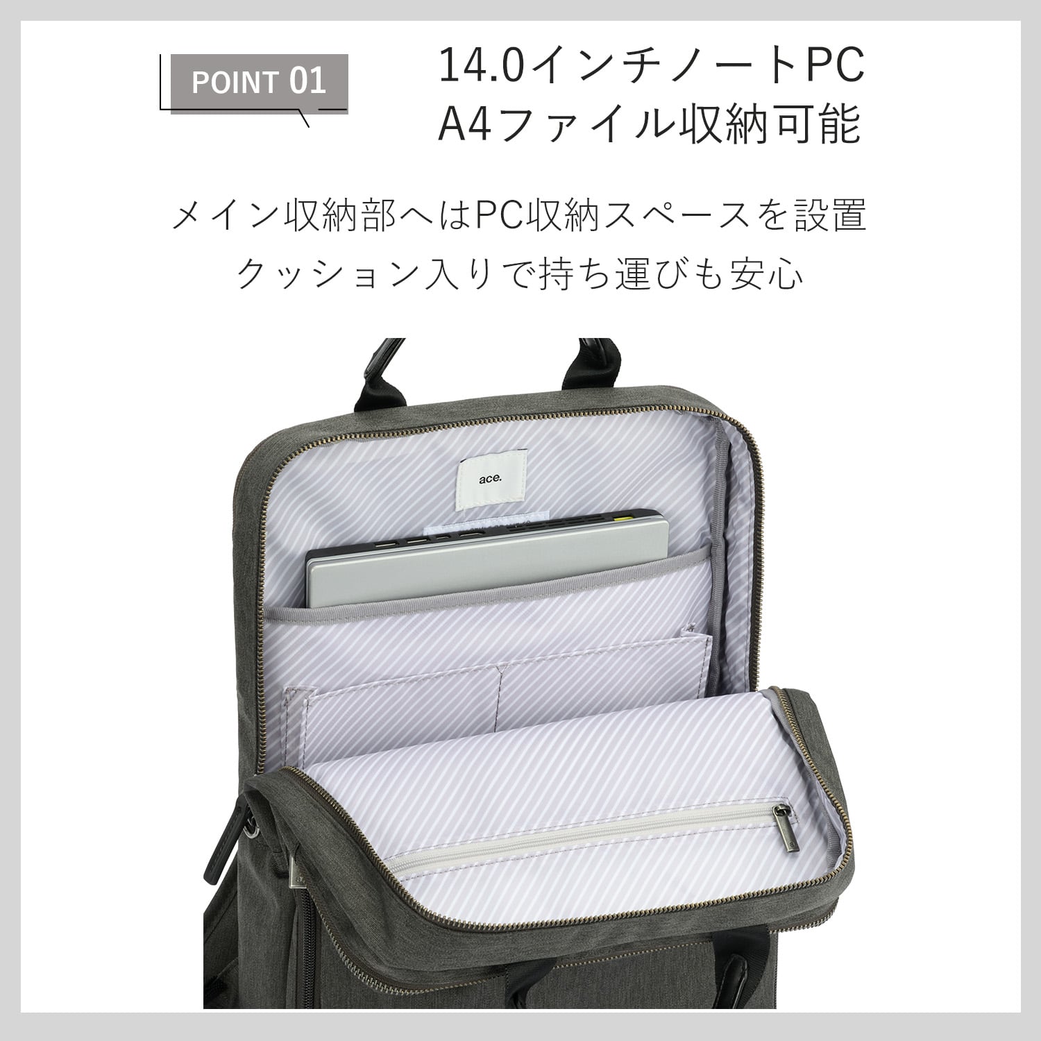- > ace./エース フィッテム ヘザー ビジネスリュック レディースビジネス A4/14.0インチPC収納 20112