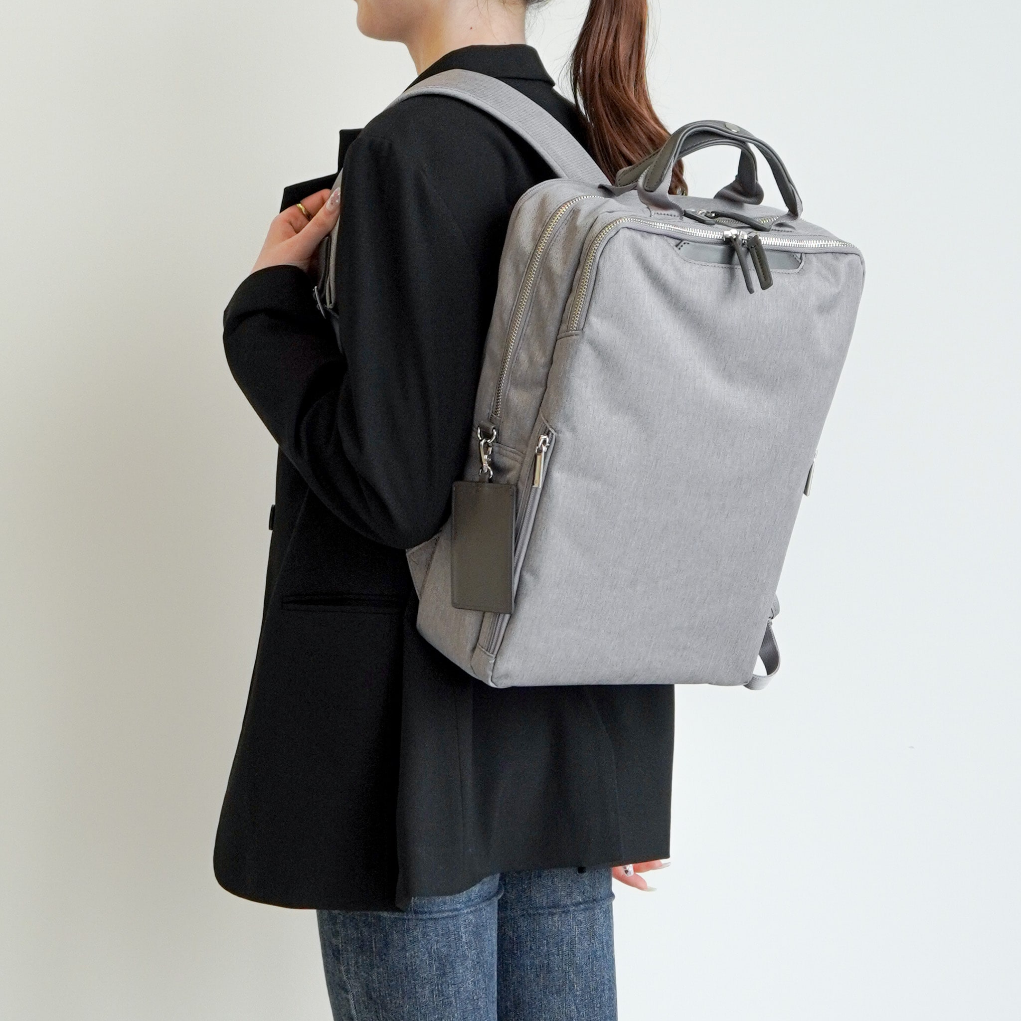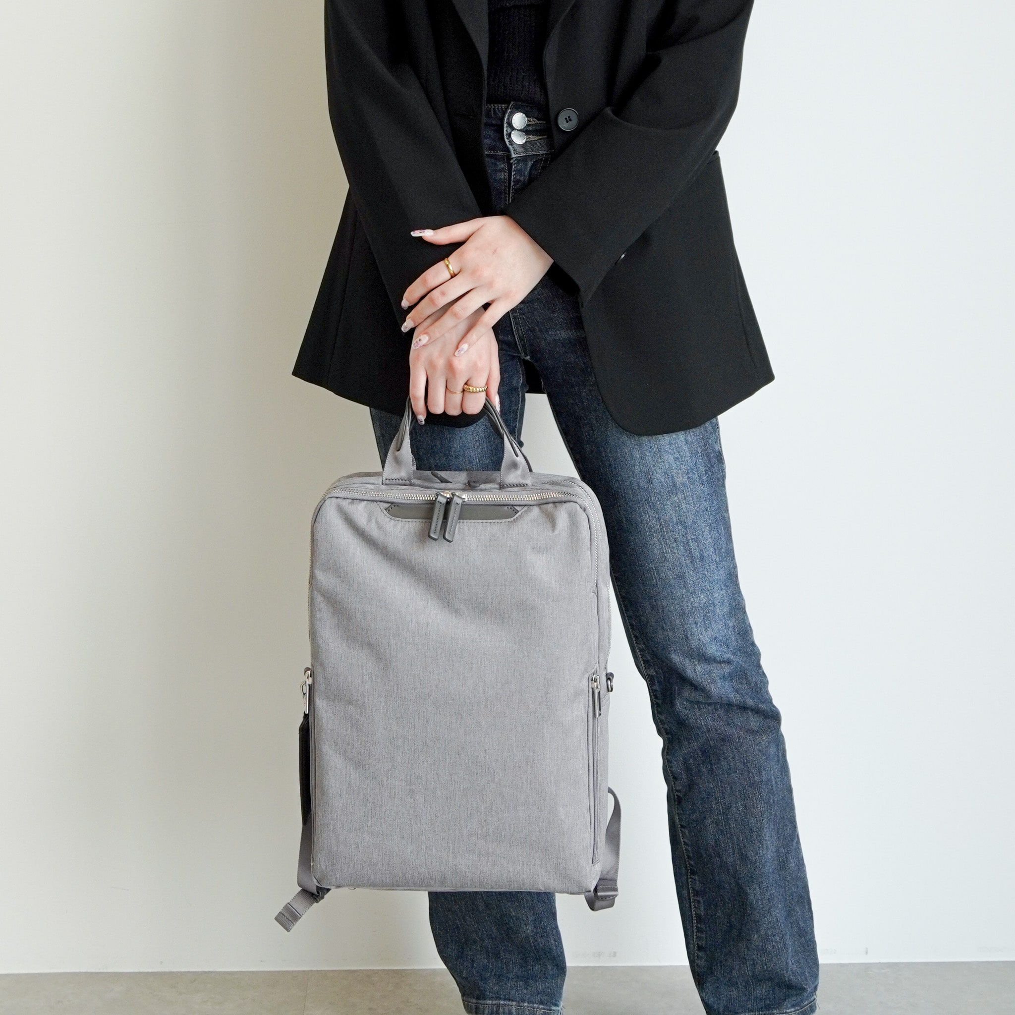 電車内などで前持ちした際も邪魔になりにくい、スリムでコンパクトなシルエットです。