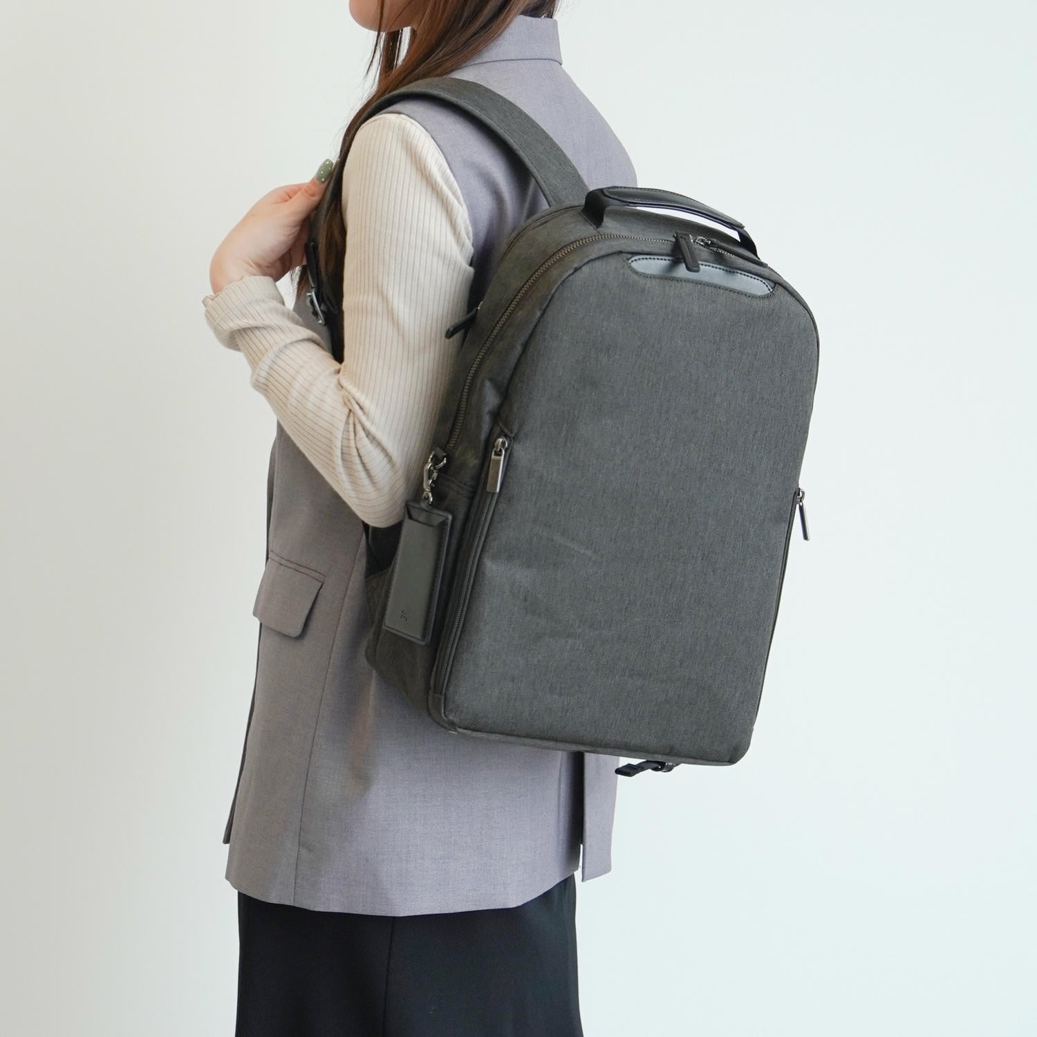 電車内などで前持ちした際も邪魔になりにくい、スリムでコンパクトなシルエットです。