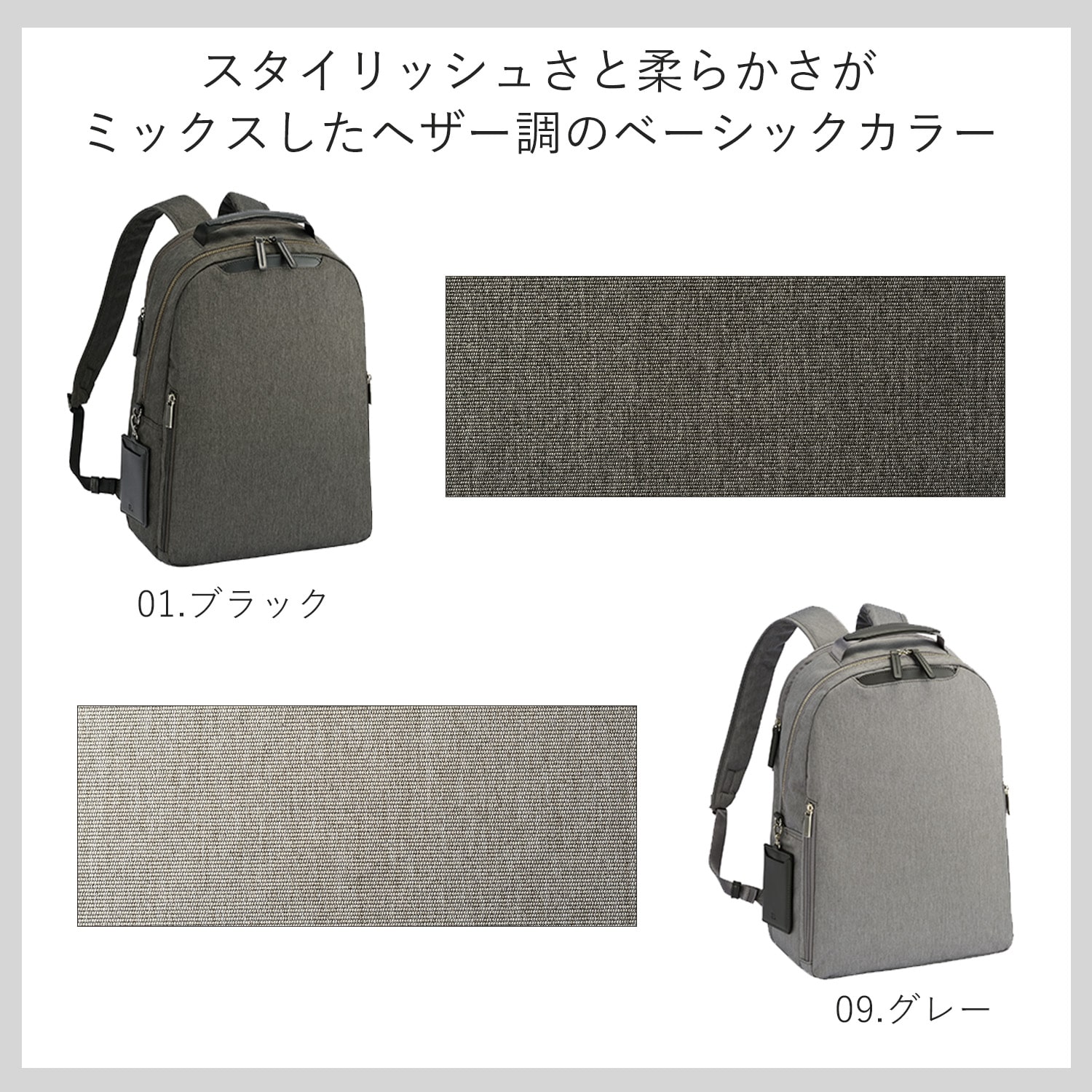 人気のフィッテムのフォルムや機能はそのままに、奥行きのあるメランジ素材で上品な印象に仕上げました。