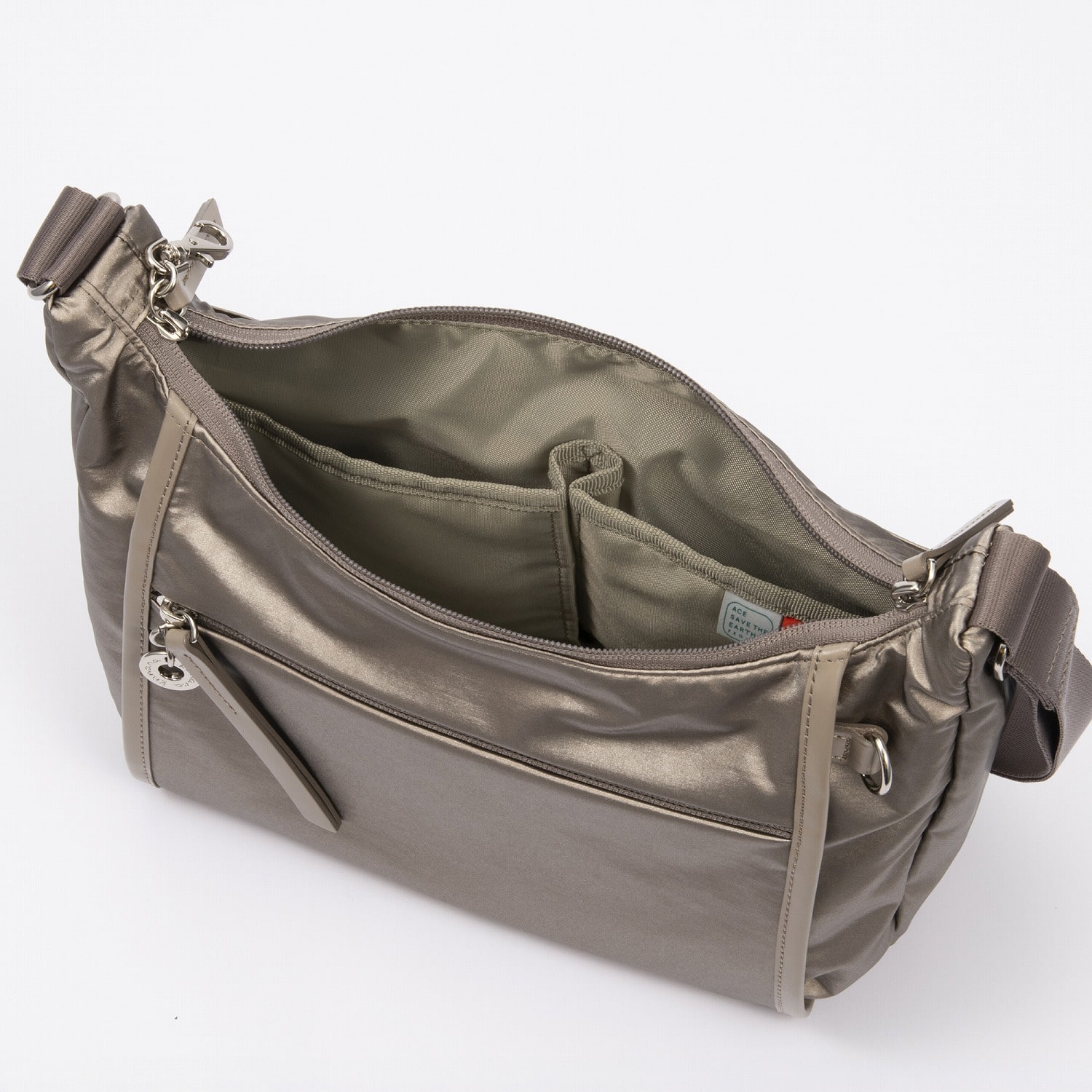 本体素材には、繊維生産過程に発生する廃材を再生して作られたリサイクルナイロンを使用。