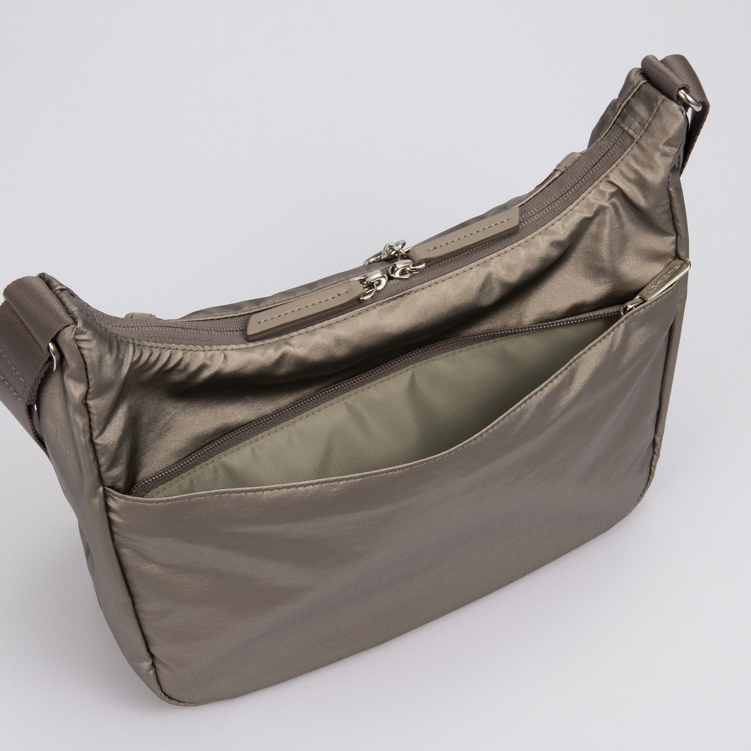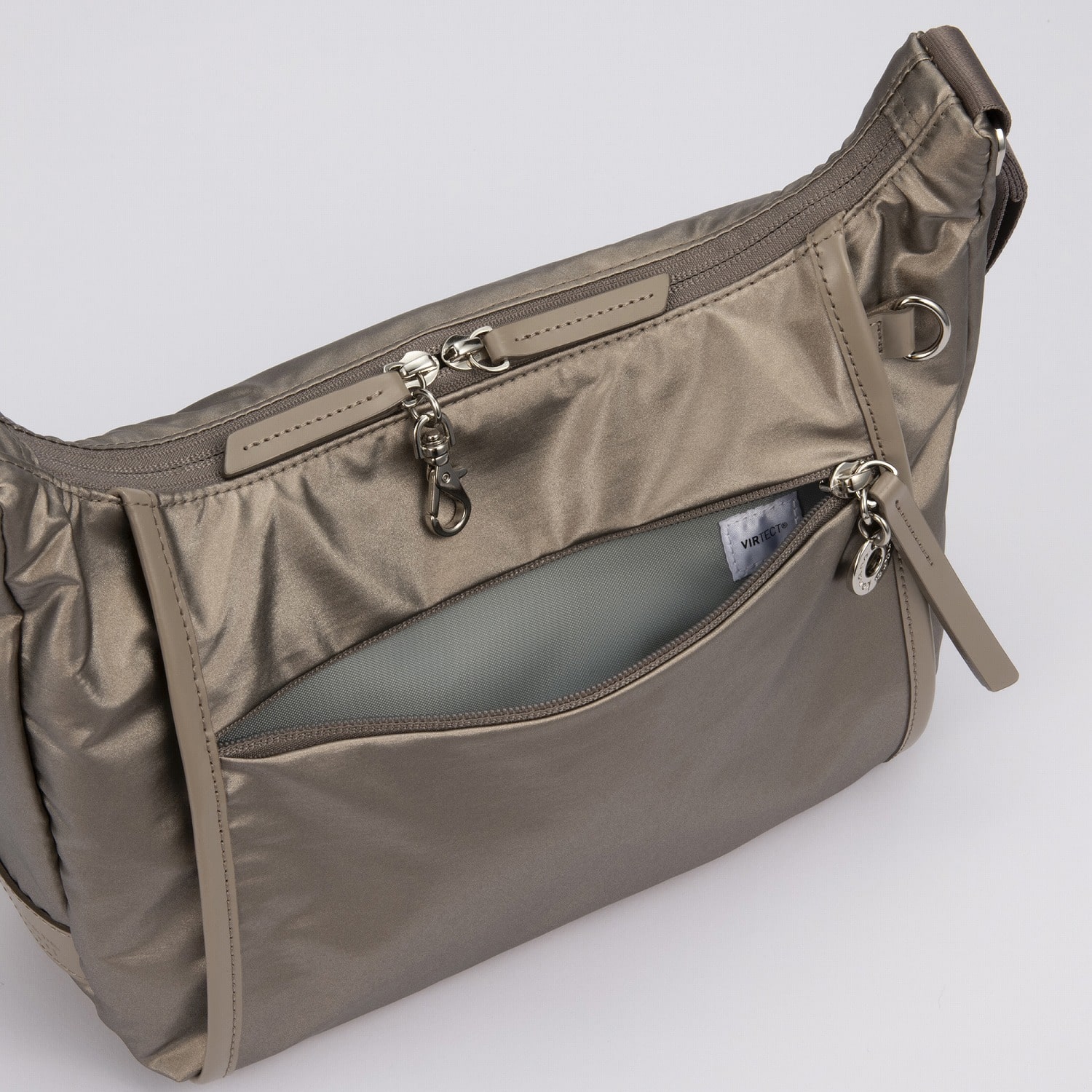 セキュリティー性の高い背面ファスナーポケット付き。