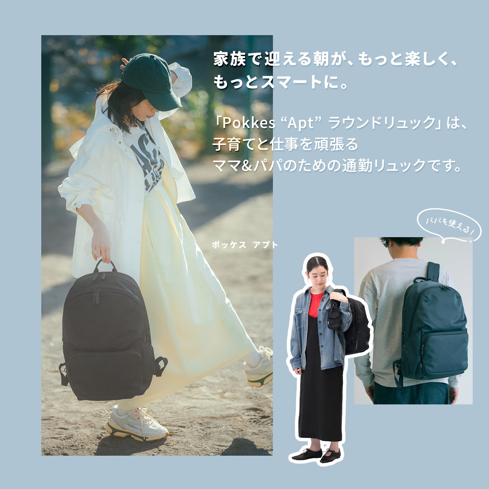 「Pokkes “Apt”(ポッケスアプト) ラウンドリュック」は、子育ても仕事も頑張るママ&パパのために生まれました。