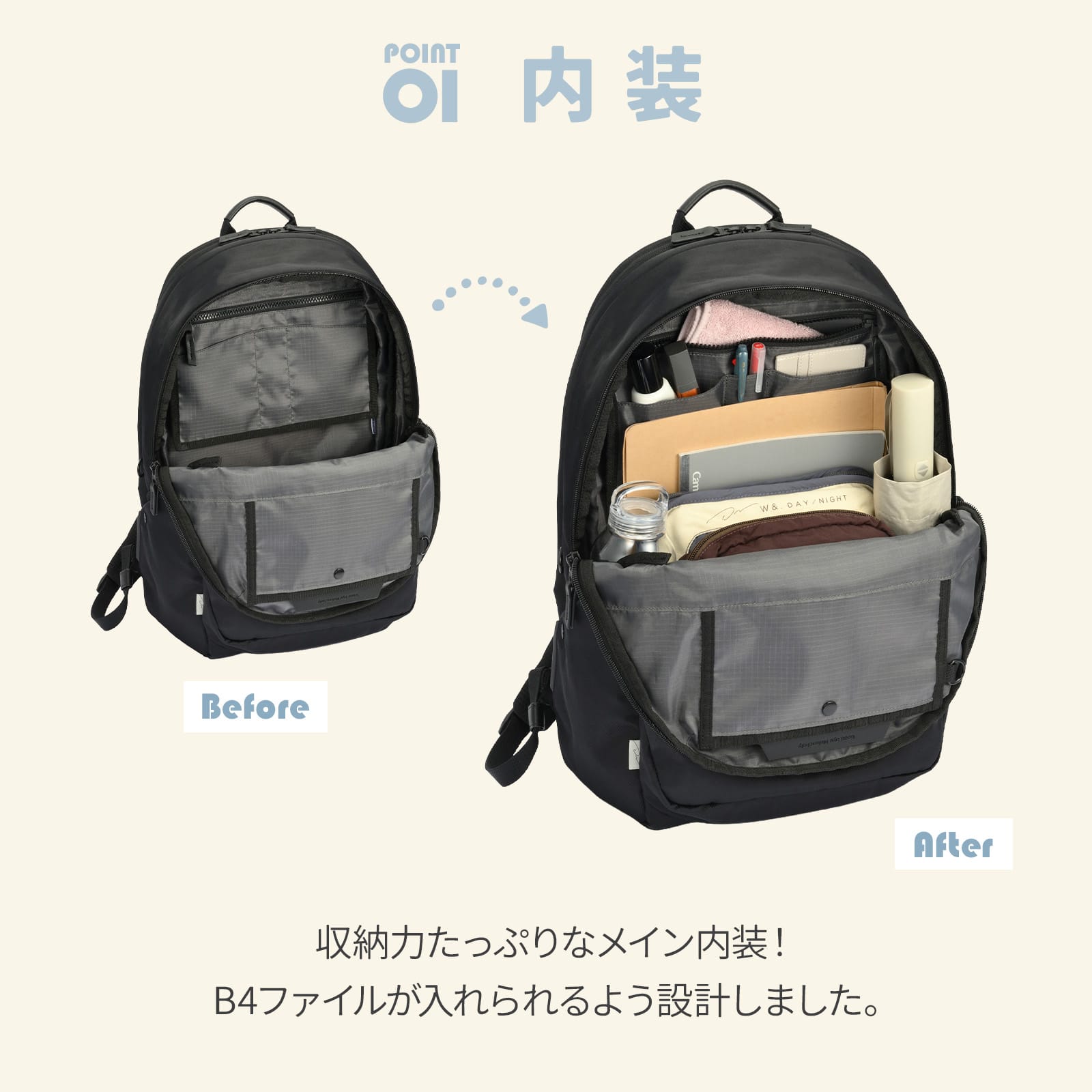 - > W&.Day/Night ポッケスアプト ラウンドリュック B4サイズ 14.0インチPC収納 20222