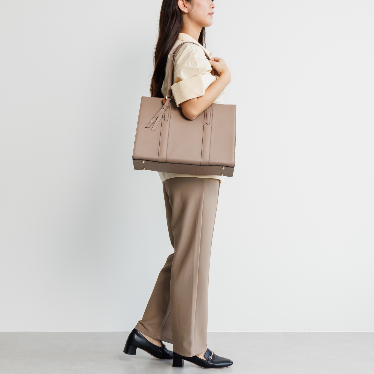 繊細で上品な印象の本革を使用したA4サイズトートバッグ。