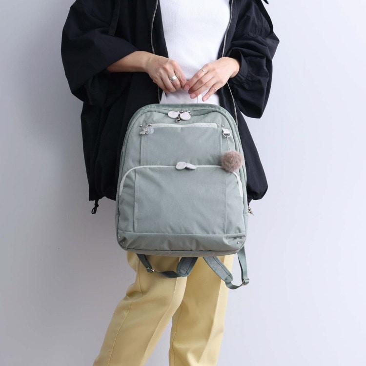 小物類をスムーズに出し入れできるファスナー付きフロントポケット付き。