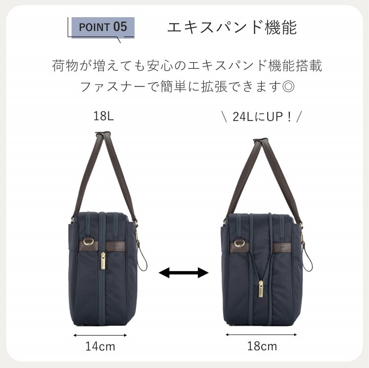 荷物の量にあわせてマチの拡張が可能なエキスパンド機能を搭載。