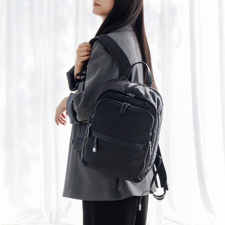 重い荷物も美しく支える構造と機能性の高さ、高級感のあるデザインが特徴のリュックサックです。