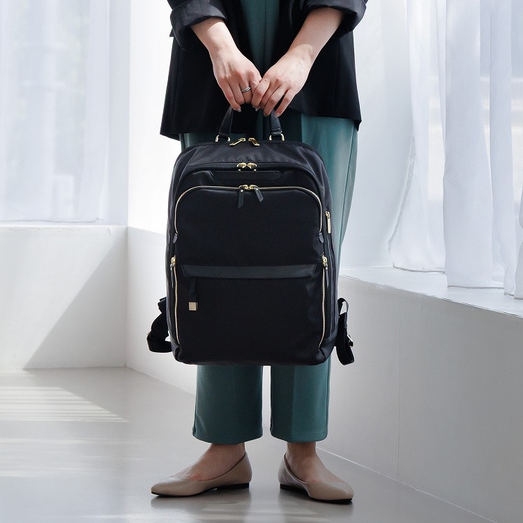 重い荷物も美しく支える構造と機能性の高さ、高級感のあるデザインが特徴のリュックサックです。