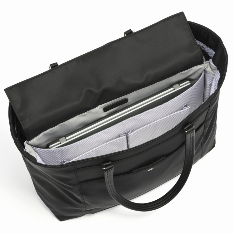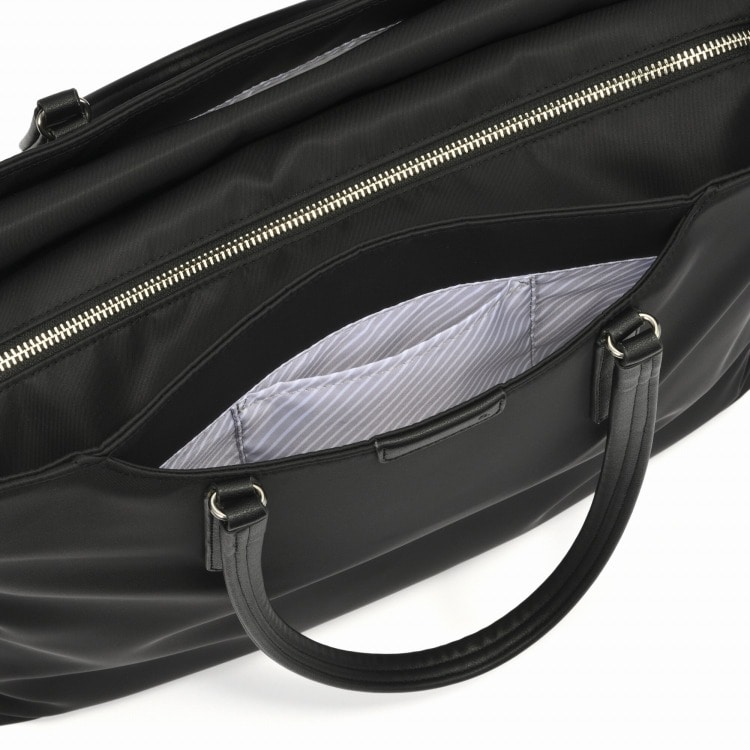 シンプルなデザインと充実の機能で、ビジネスシーンを快適に支えるトートバッグです。