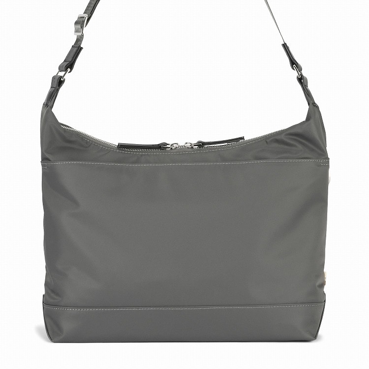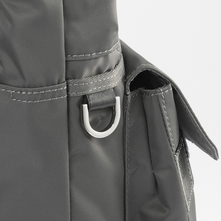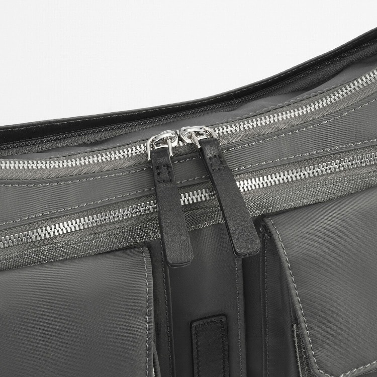 繊維生産過程に発生する廃材を再生して作られたリサイクルナイロンを使用。高密に織り上げた、綺麗目なツイル素材