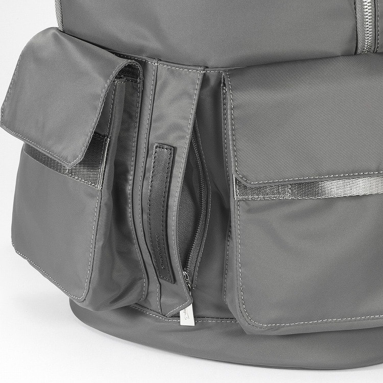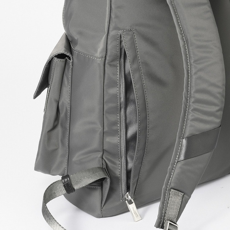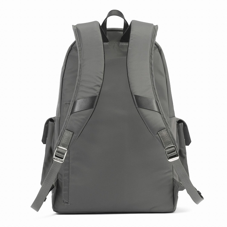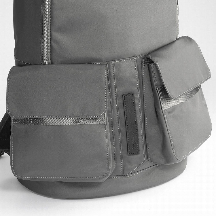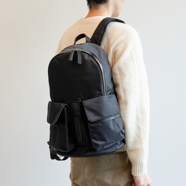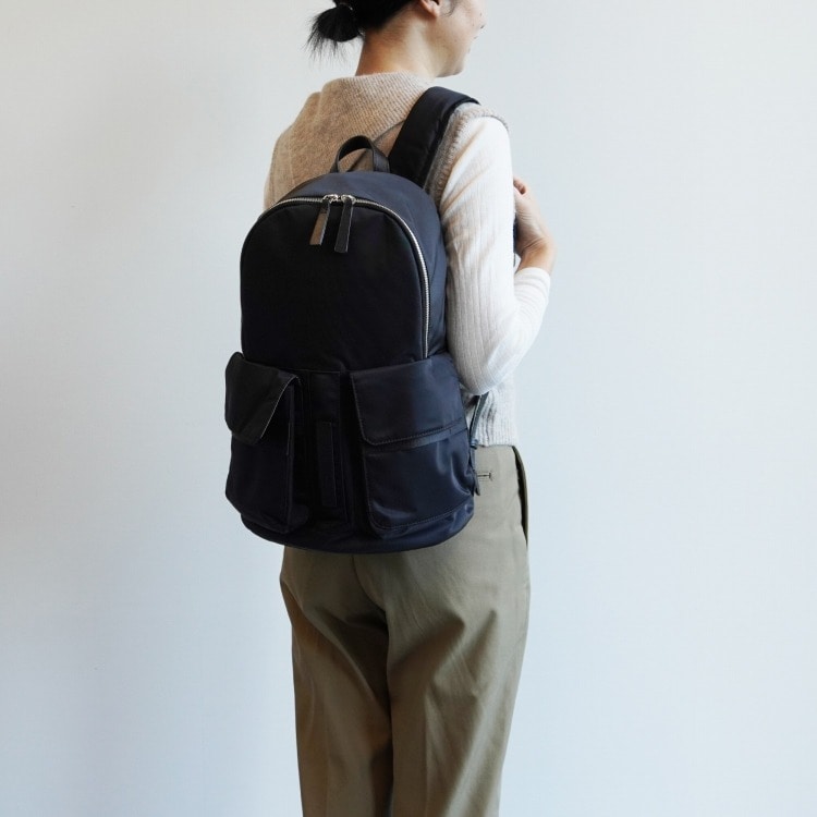 繊維生産過程に発生する廃材を再生して作られたリサイクルナイロンを使用。高密に織り上げた、綺麗目なツイル素材