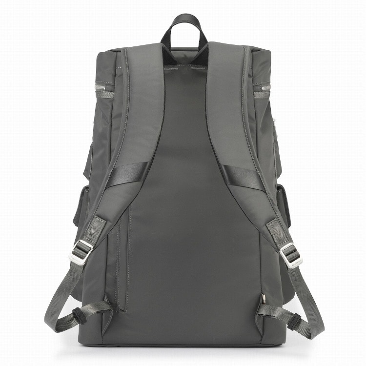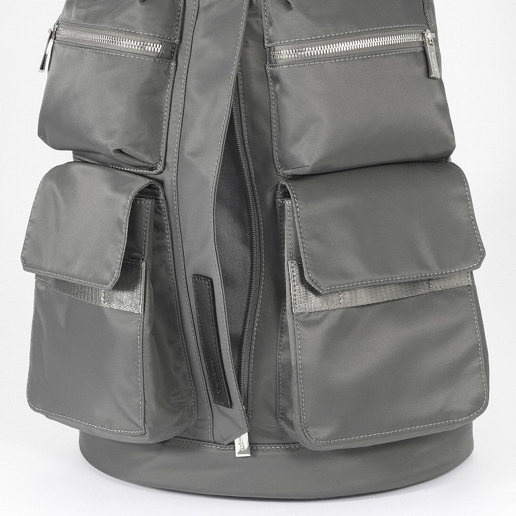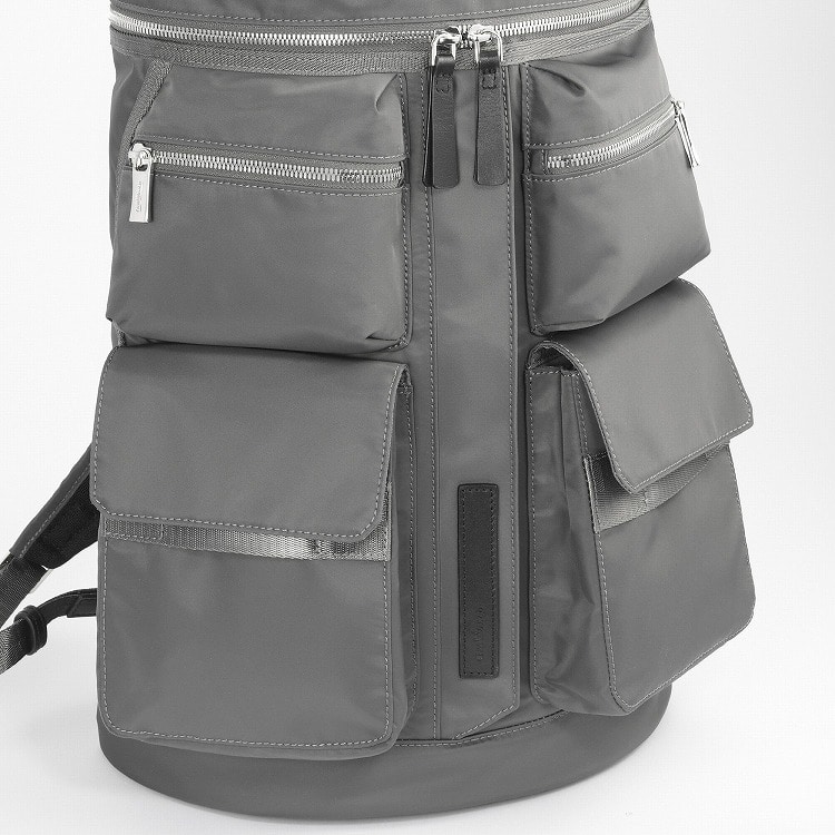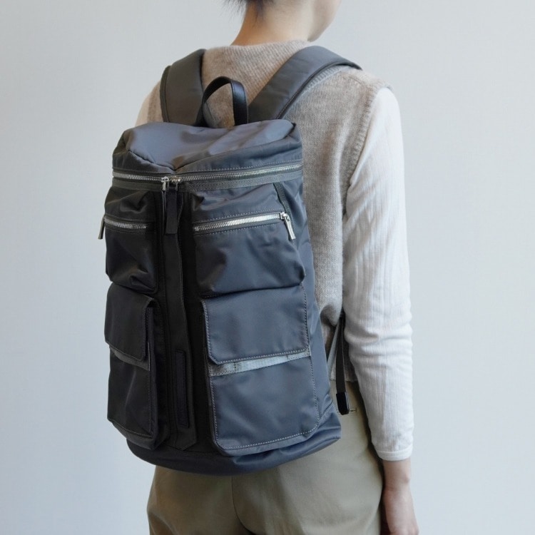 フロントのフラップポケットや直線的な切り返しで随所にクラシカルな要素は残しつつ、都会的でモードなデザインに仕上げています。