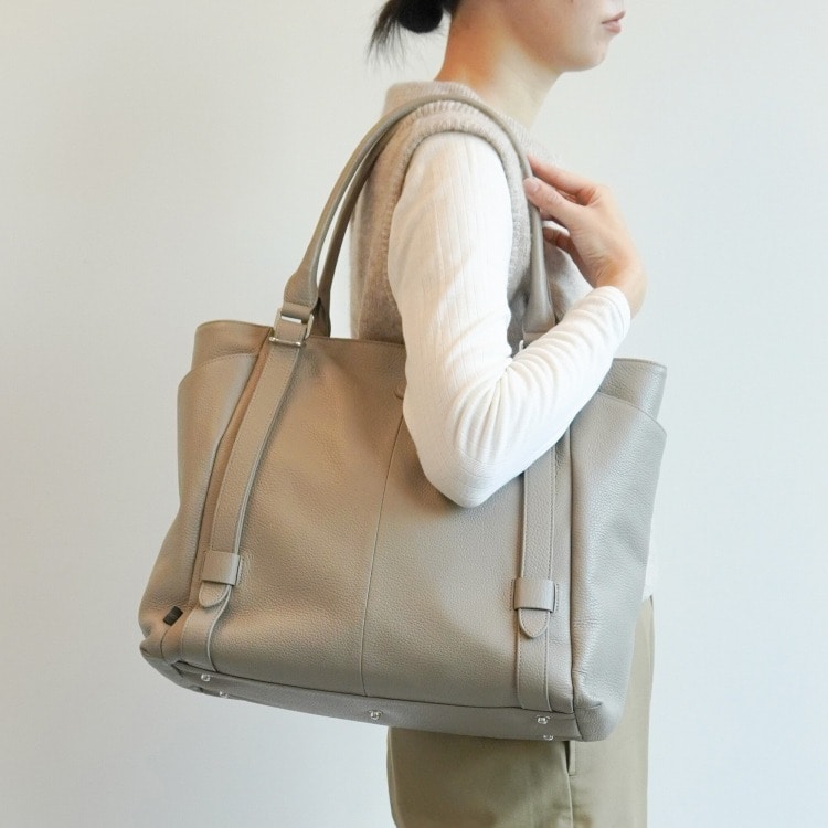 クロム鞣しで仕上げた柔軟性のある牛革を使用。上品な型押しとしなやかなタッチ感が味わえるソフトシュリンクレザー。