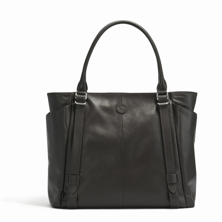 肩掛けの際 前に引き寄せるハンドルの役割やストールやマフラーを挟んで持ち運べる簡易ホルダーにもなるフロントベルト。