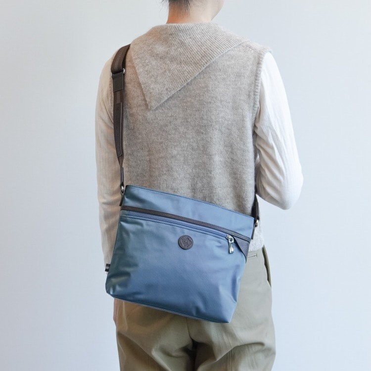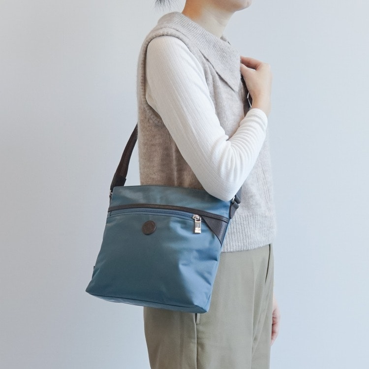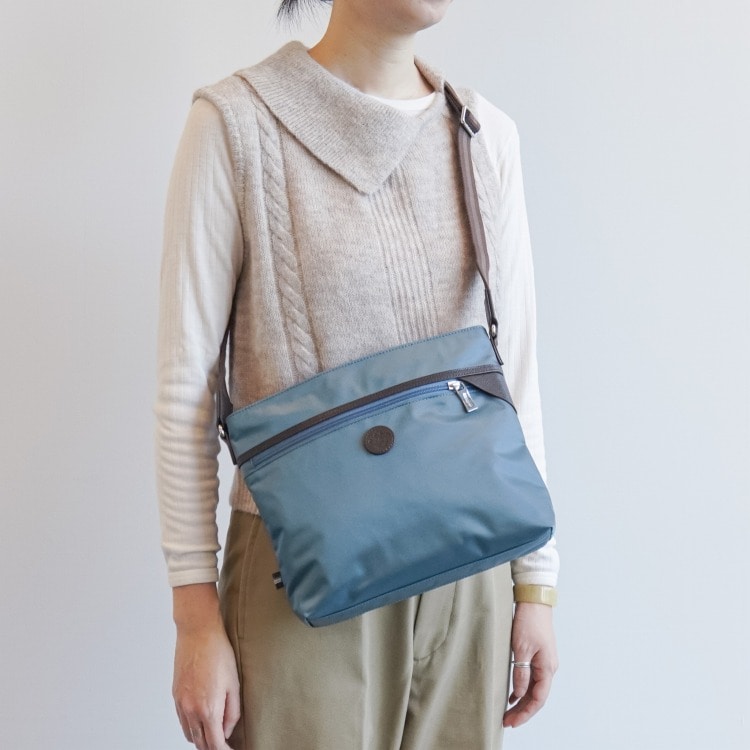 | 素材 | リサイクルナイロン100×210dnツイル/PU加工/牛革 |