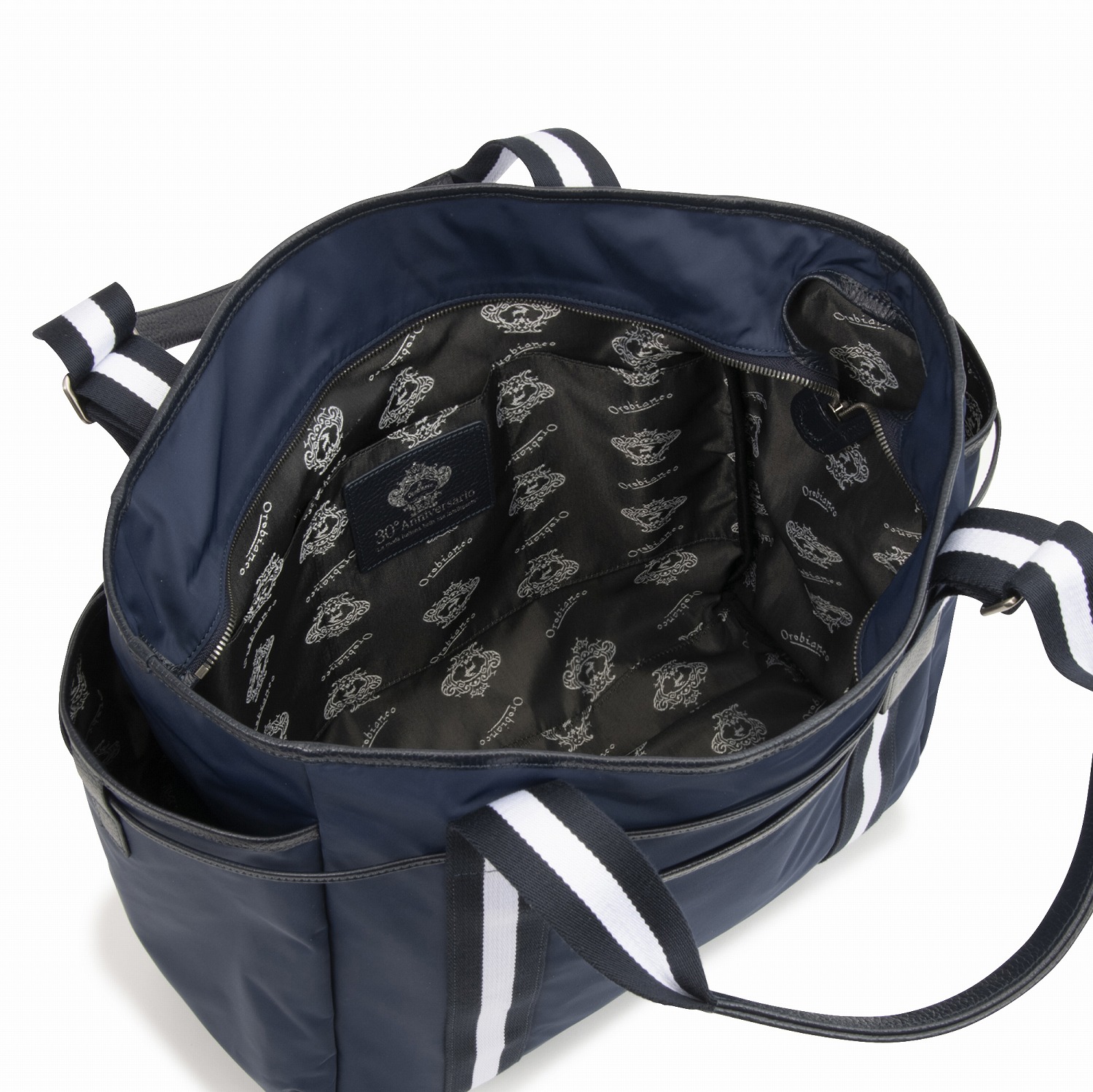 オロビアンコ30周年を記念した、ベーシックシリーズ。内装へはレザーに箔押しで表現した30周年限定グラフィックをデザイン。