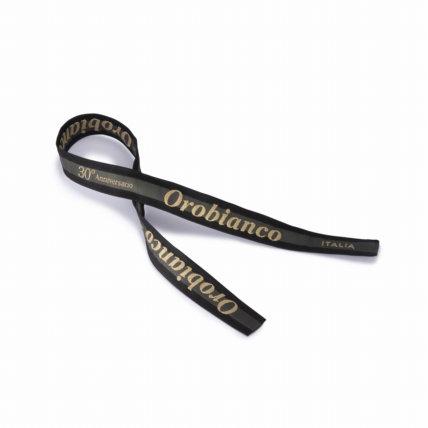 アイコンであるリボンには、リネアロゴとブランドコンセプト 「美しさと知性を兼ね備えたイタリアンファッション」 を金糸で表現したWoven Labelを使用。